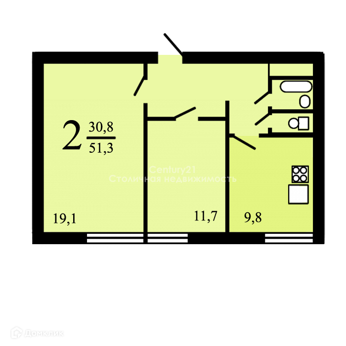 Общая площадь 51.3 м2