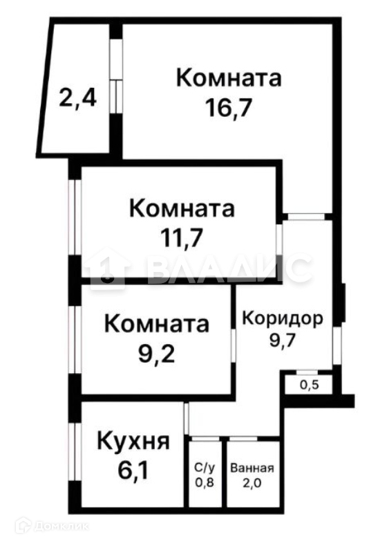 Общая площадь 58.5 м2