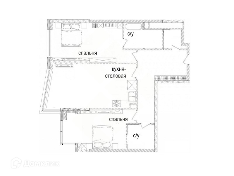Планировочное решение включает в себя: кухню-гостиную-столовую, мастер-спальню со своим санузлом (душевая кабина), детскую комнату, второй санузел (душевая кабина), прихожую, вместительную гардеробную.