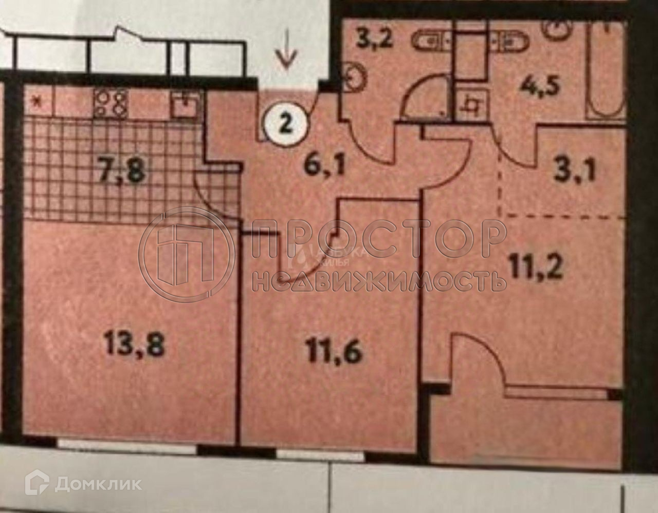 Общая площадь 63 м2