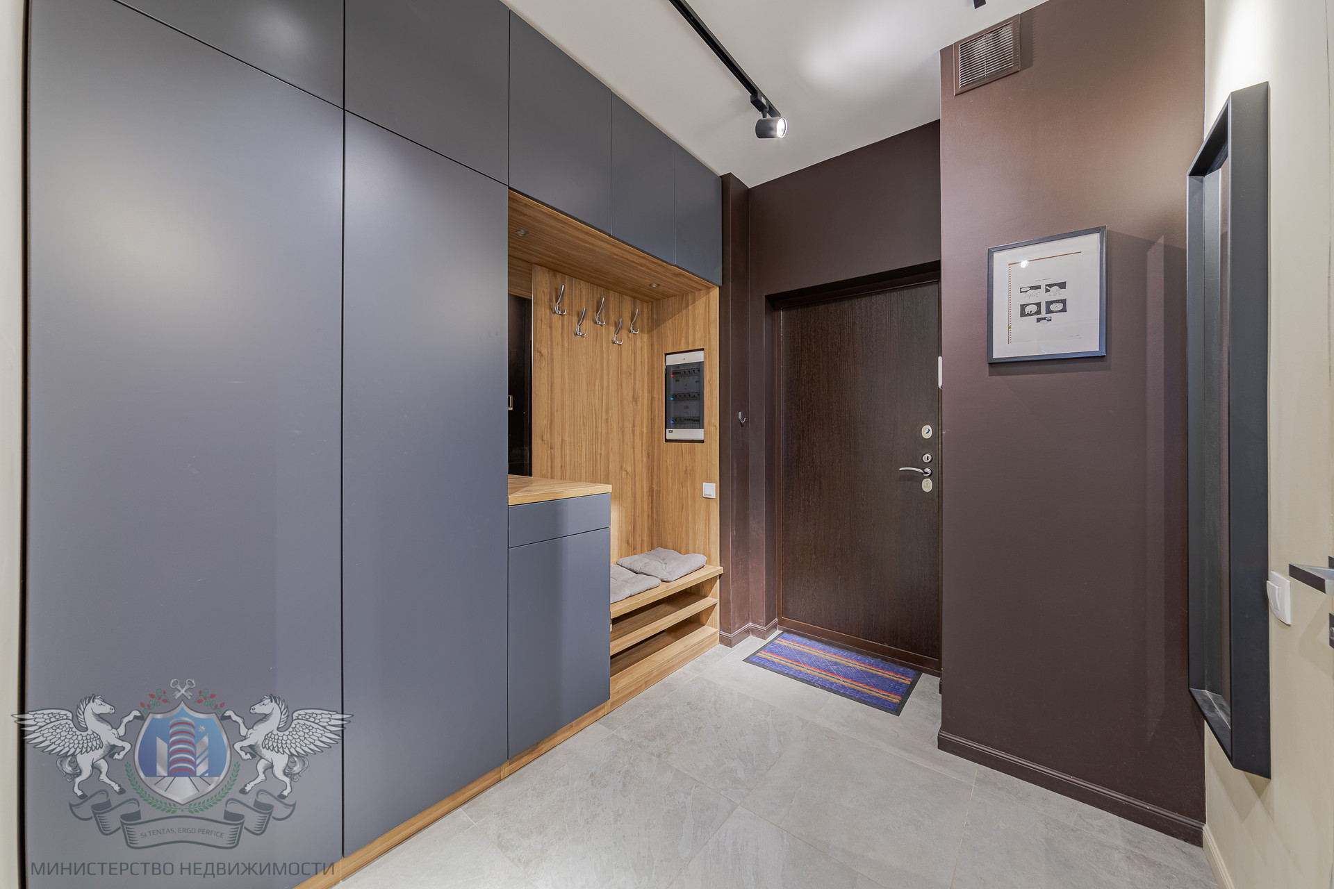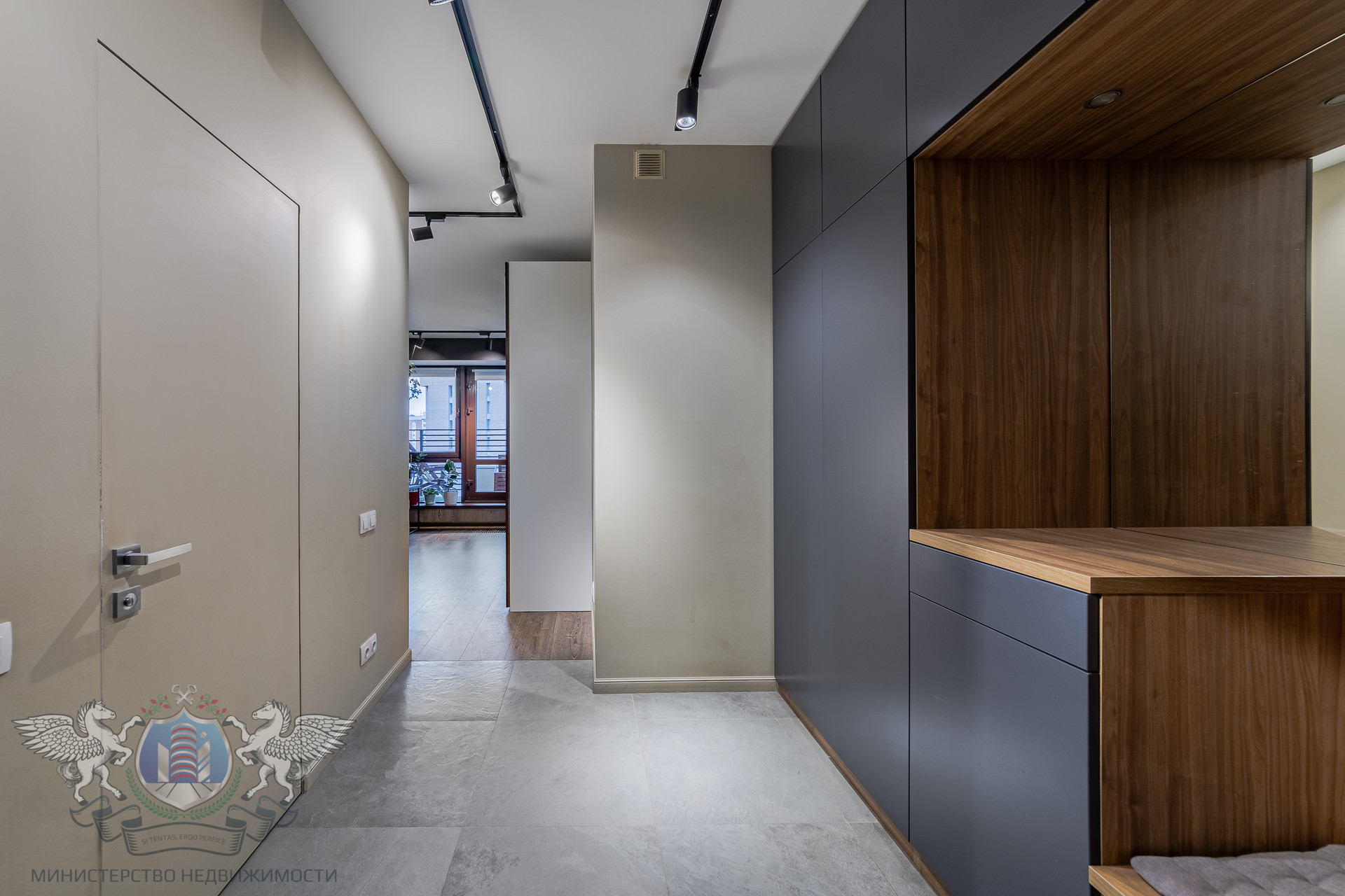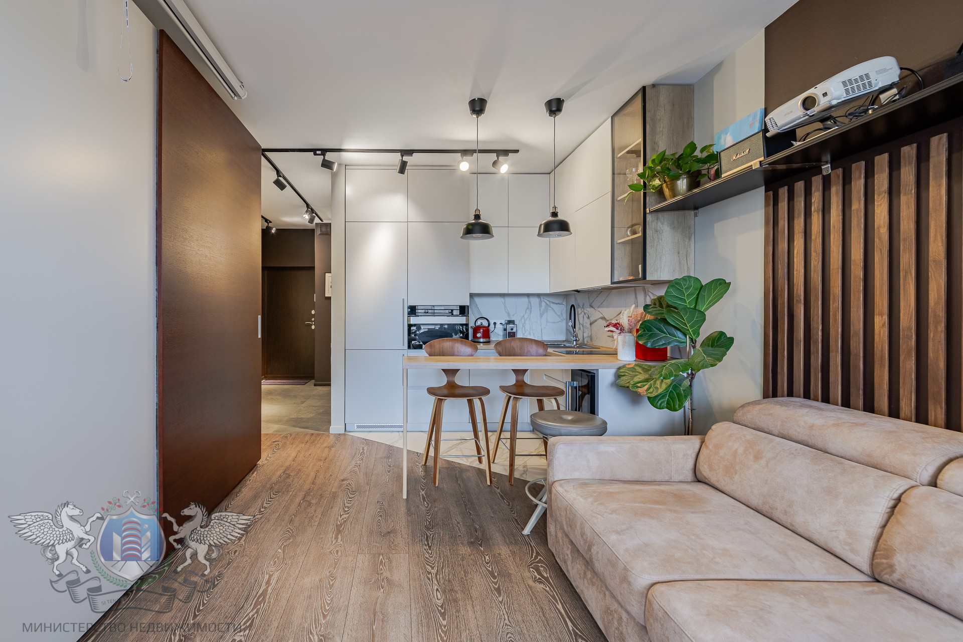Выполнен по дизайн-проекту бюро ReRooms. Вся встроенная мебель сделана на заказ: