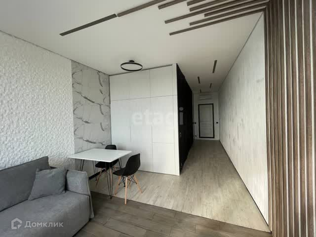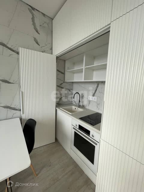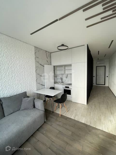 Студия функционально очень удобная, санузел совмещенный, встроенная мебель и бытовая техника, есть все необходимое для проживания. Открывается панорамный вид из окон.
