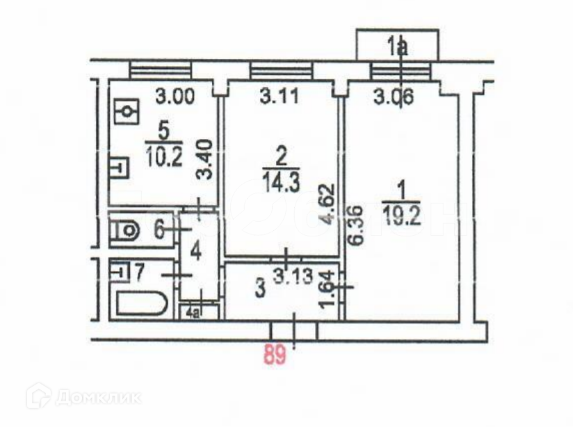 Общая площадь 56.4 м2