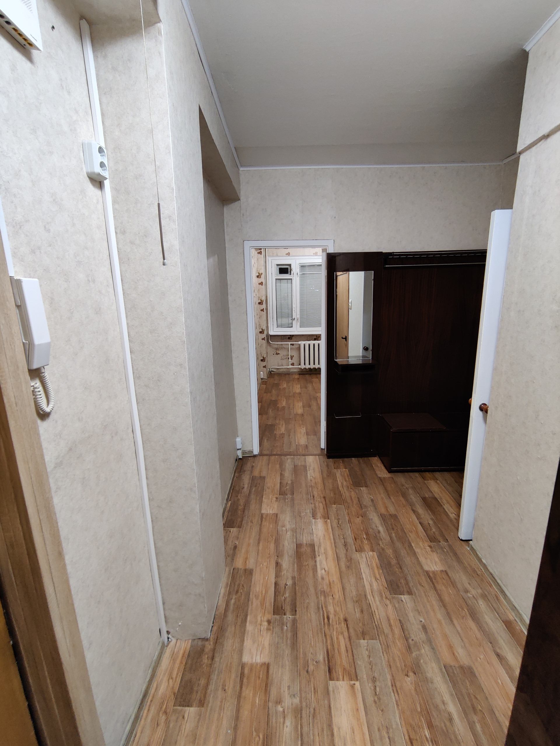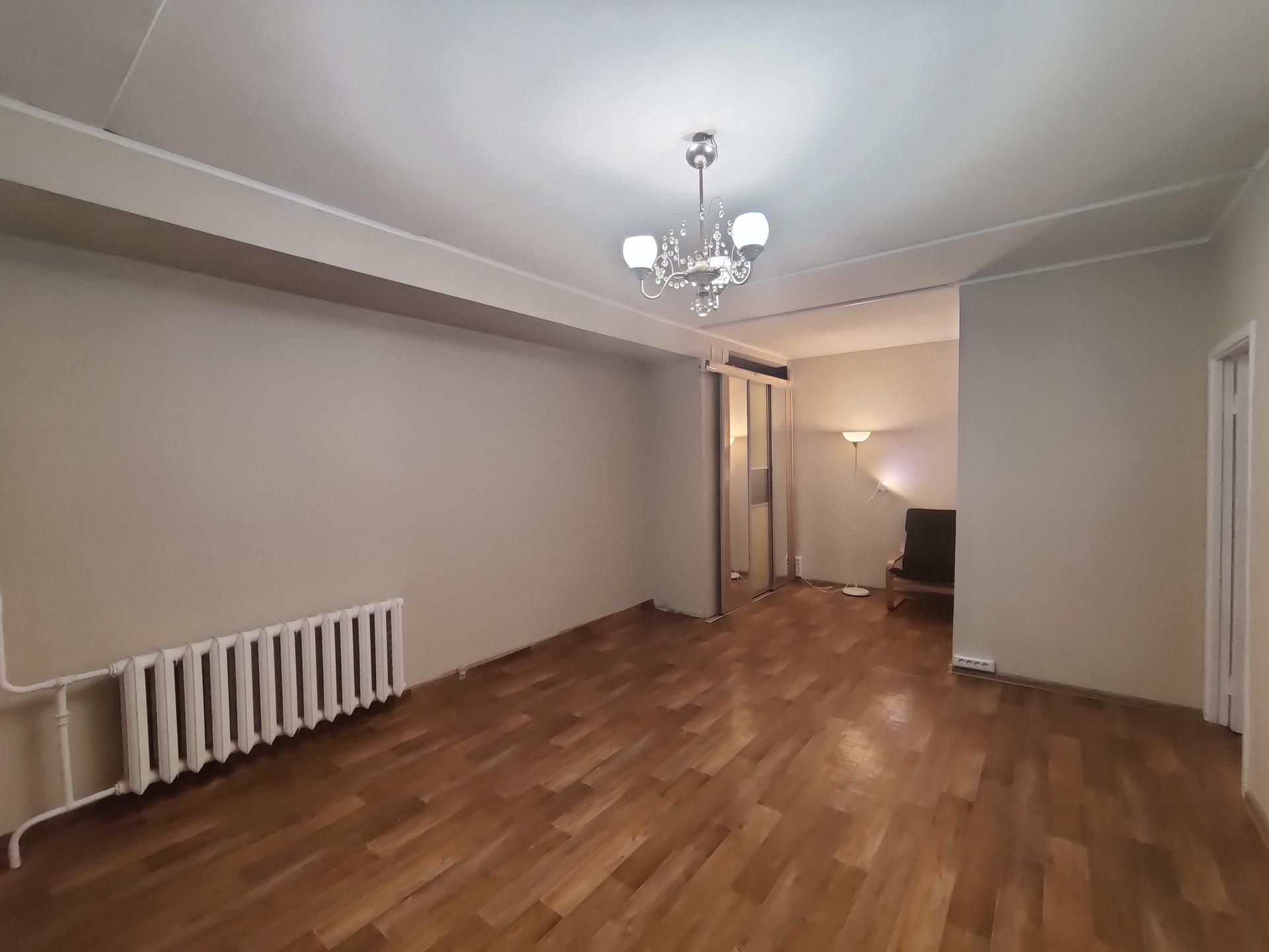 Квартира в одной семье более 35 лет. Общая площадь 42.1м2, площадь комнаты 24.9м2, площадь кухни 7.5м2, Коридор - 6.7м2, большой балкон 6.5 м длиной с поворотом (вид на 3 стороны света!) с теплым остеклением. Комнату можно зонировать на спальную зону и гостиную. Также в ней есть ниша, которую удобно использовать как встроенный шкаф.