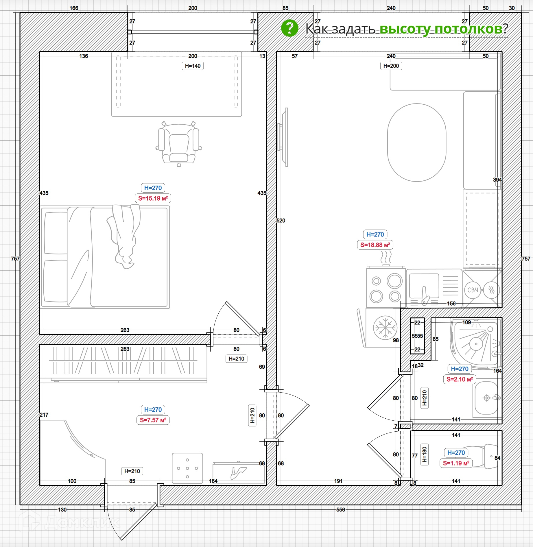 Общая площадь 45 м2