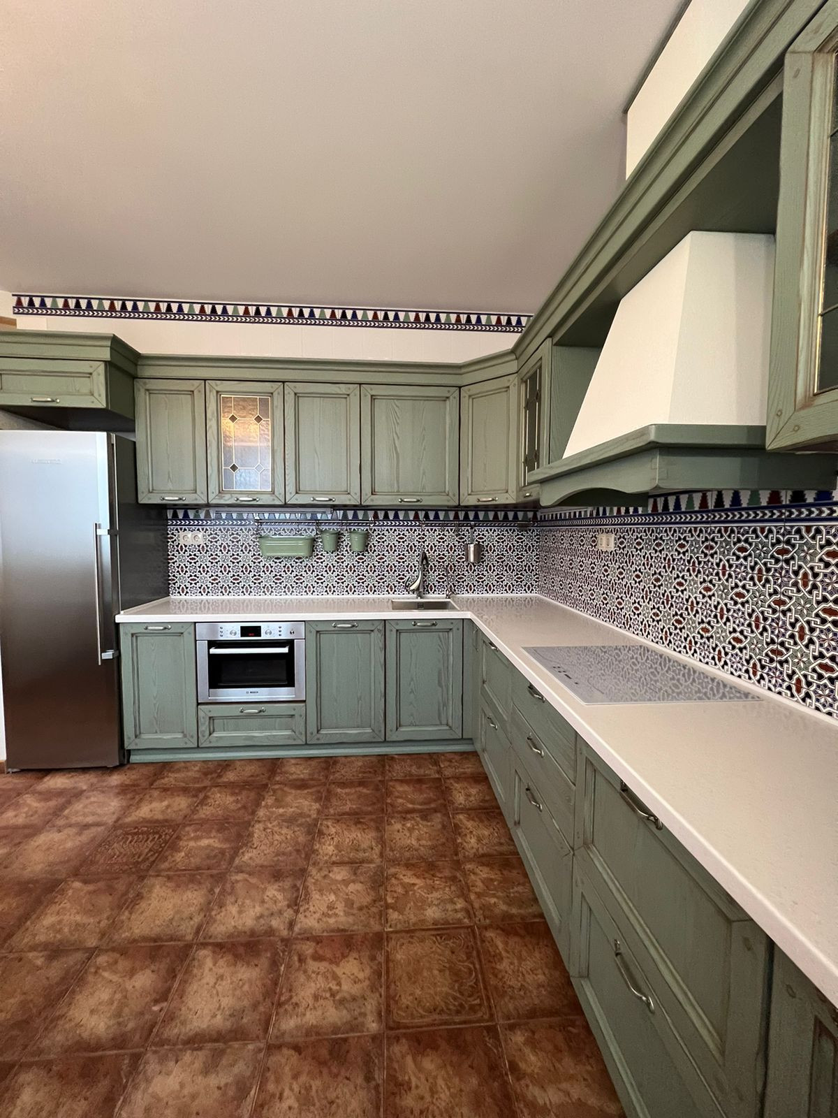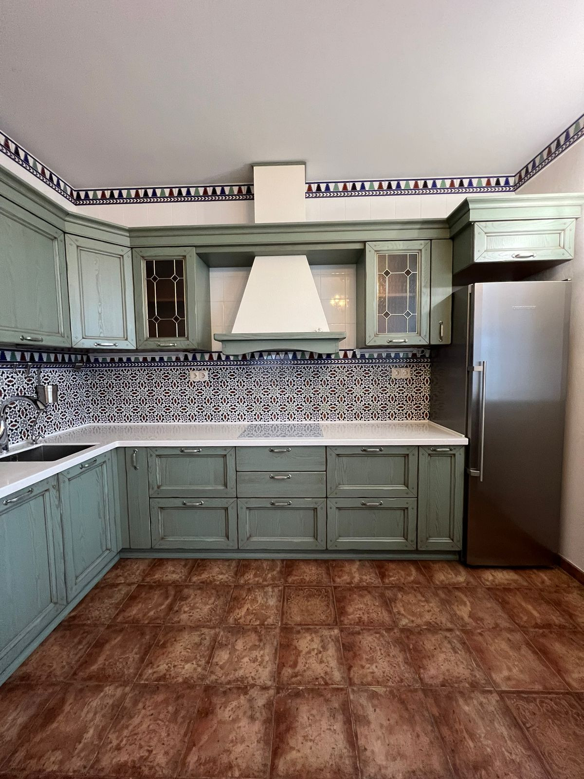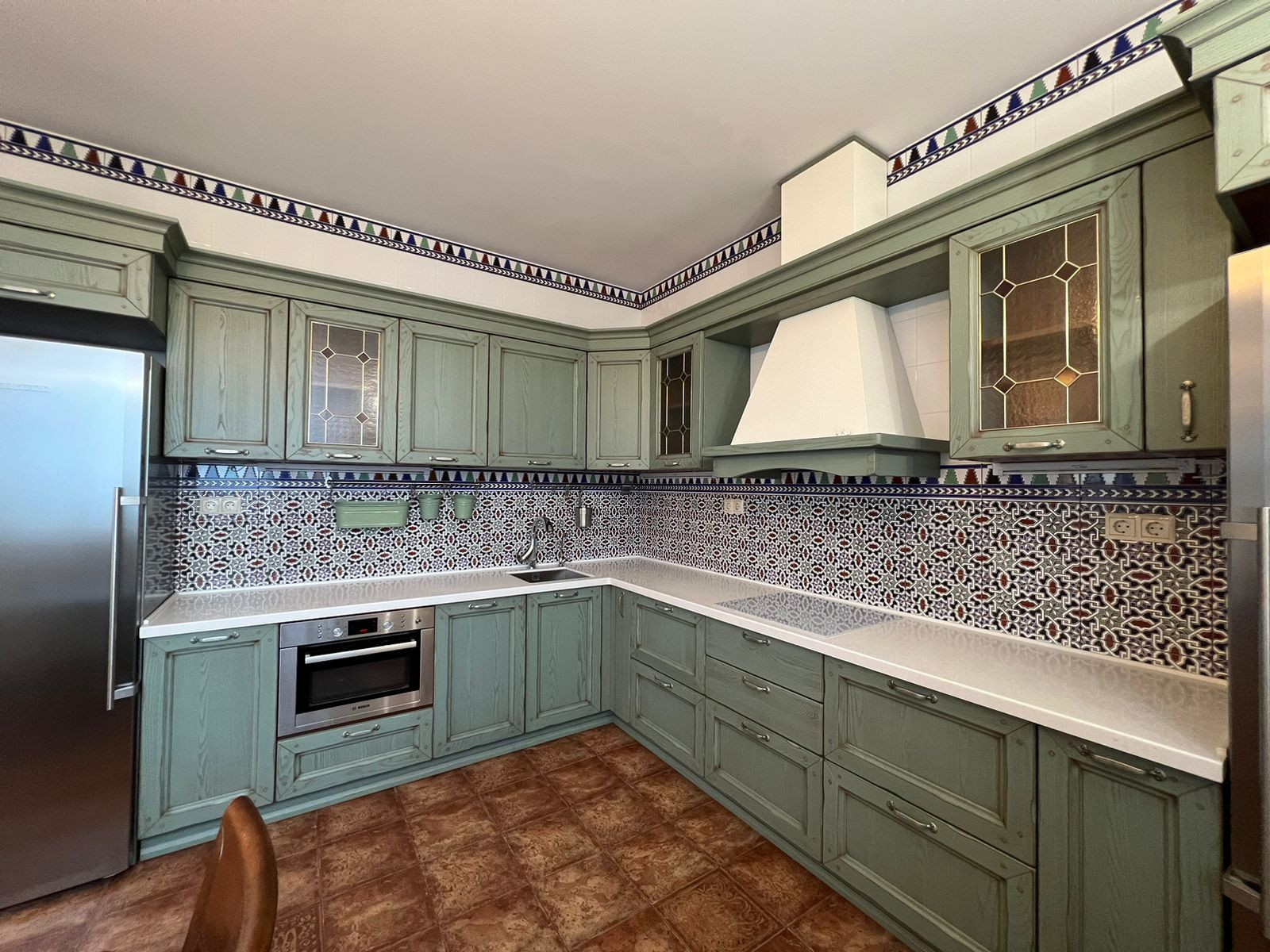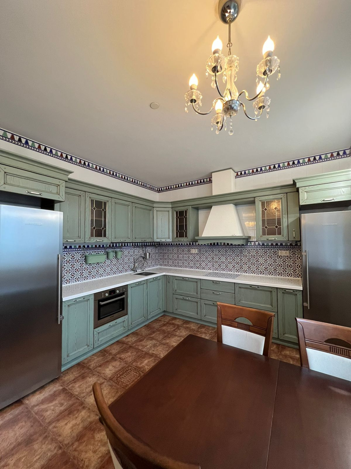 • 15 кв.м. – кухня, с встроенным итальянским кухонным гарнитуром и современной бытовой техникой. На полу испанская плитка и теплый пол.