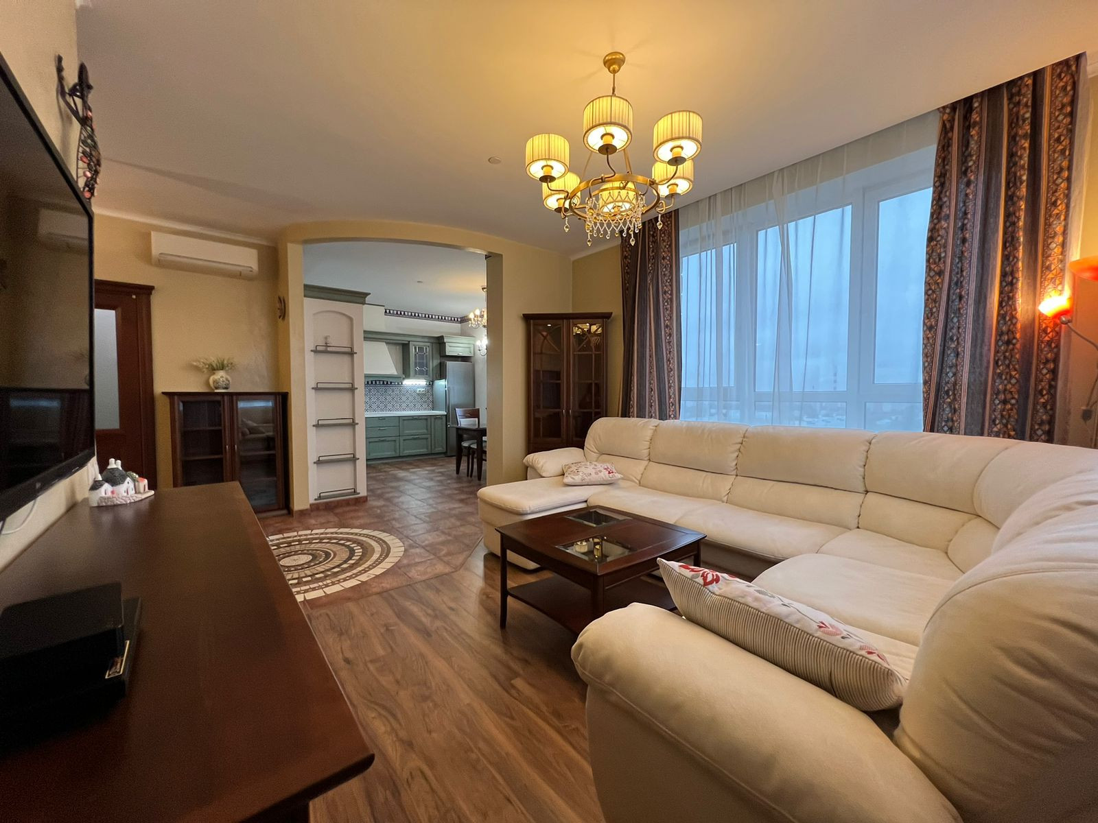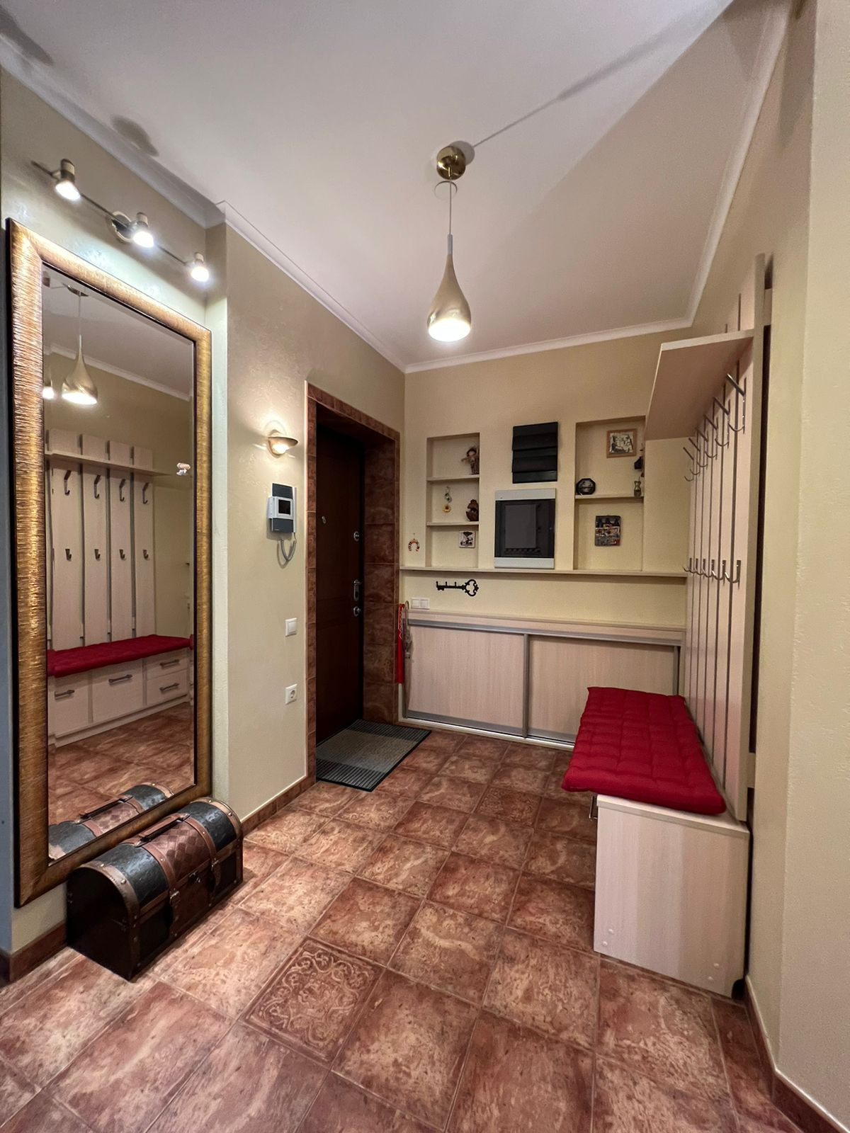 • В квартире во время ремонта использовались: плитка –Испания, отделка стен - итальянская штукатурка фирмы San Marko, на полу в гостиной каменное панно ручной работы (травертин, мрамор, натуральные камни), ламинат 33 класс фирмы Pergo Швеция, в спальне и в большой комнате установлена сплит система -мульти сплит Mitsubishi.