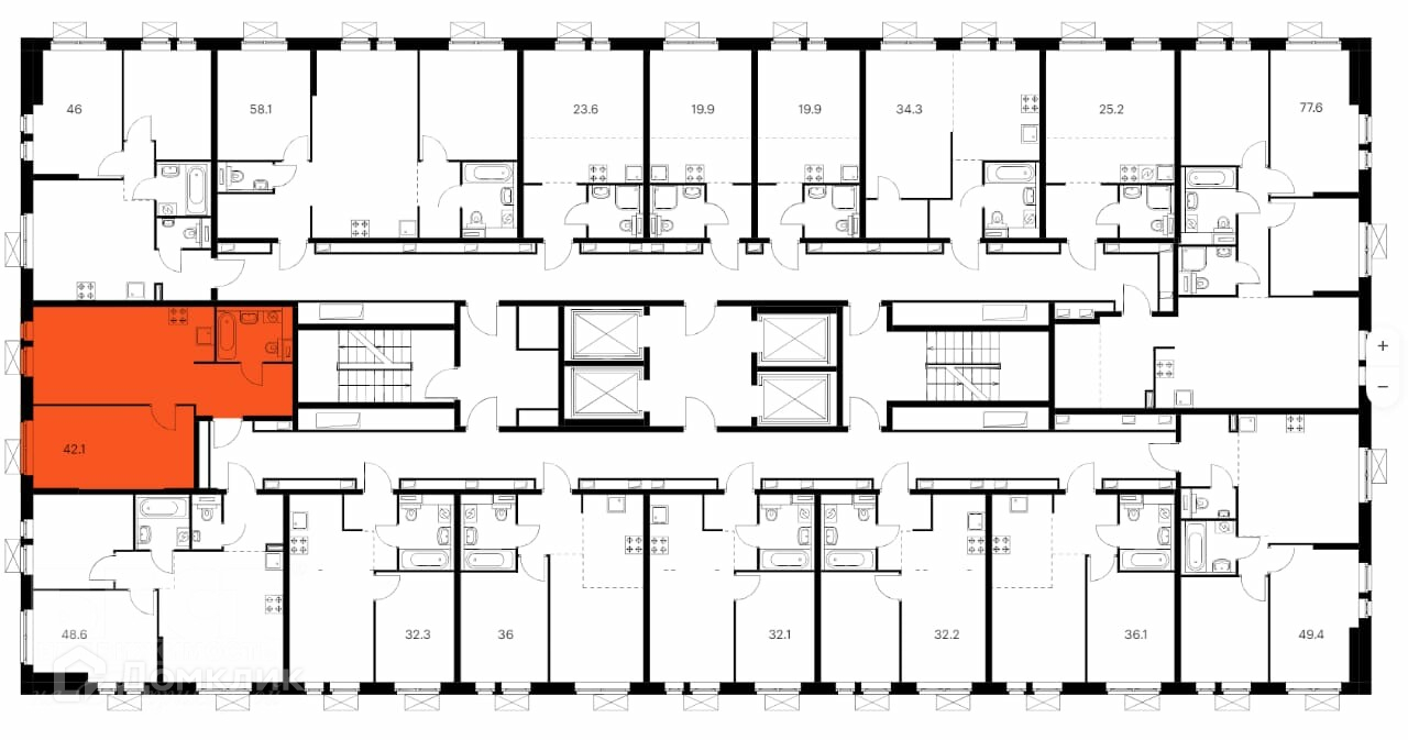 Общая площадь 42.1 м2
