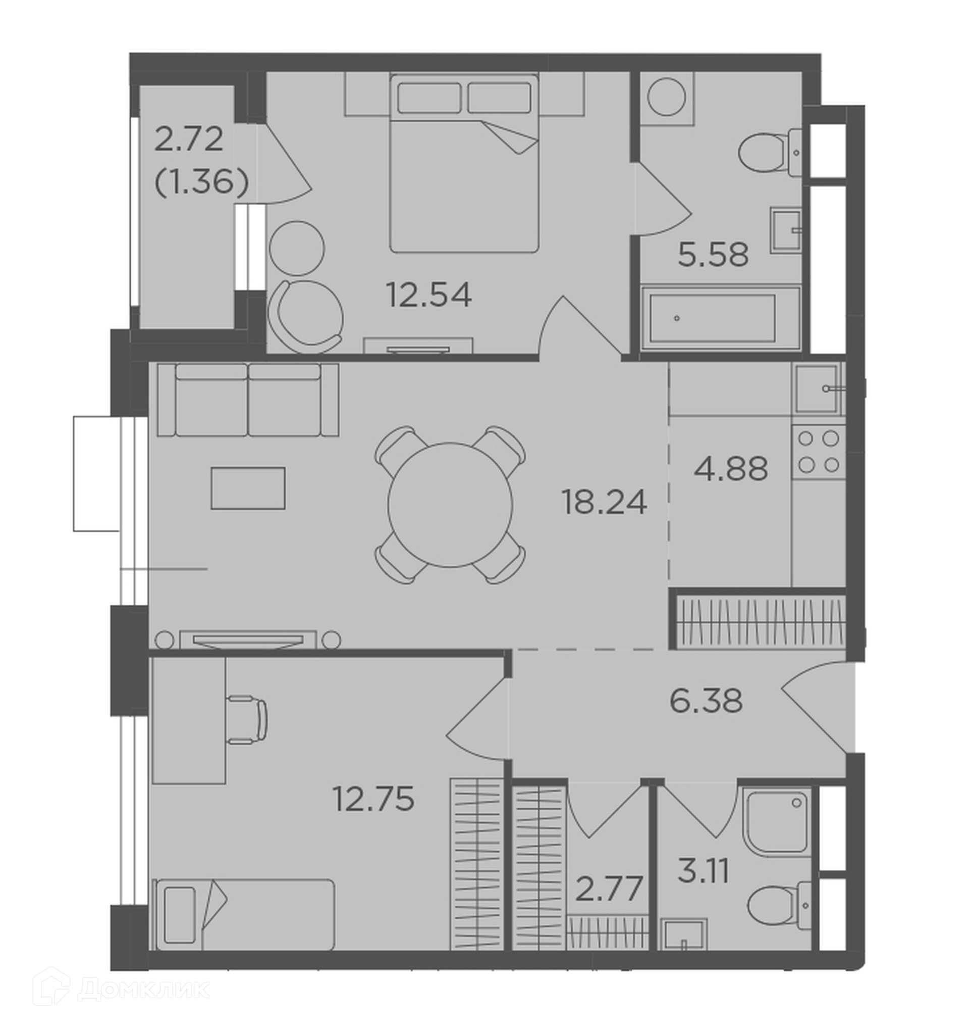 Общая площадь 67.61 м2