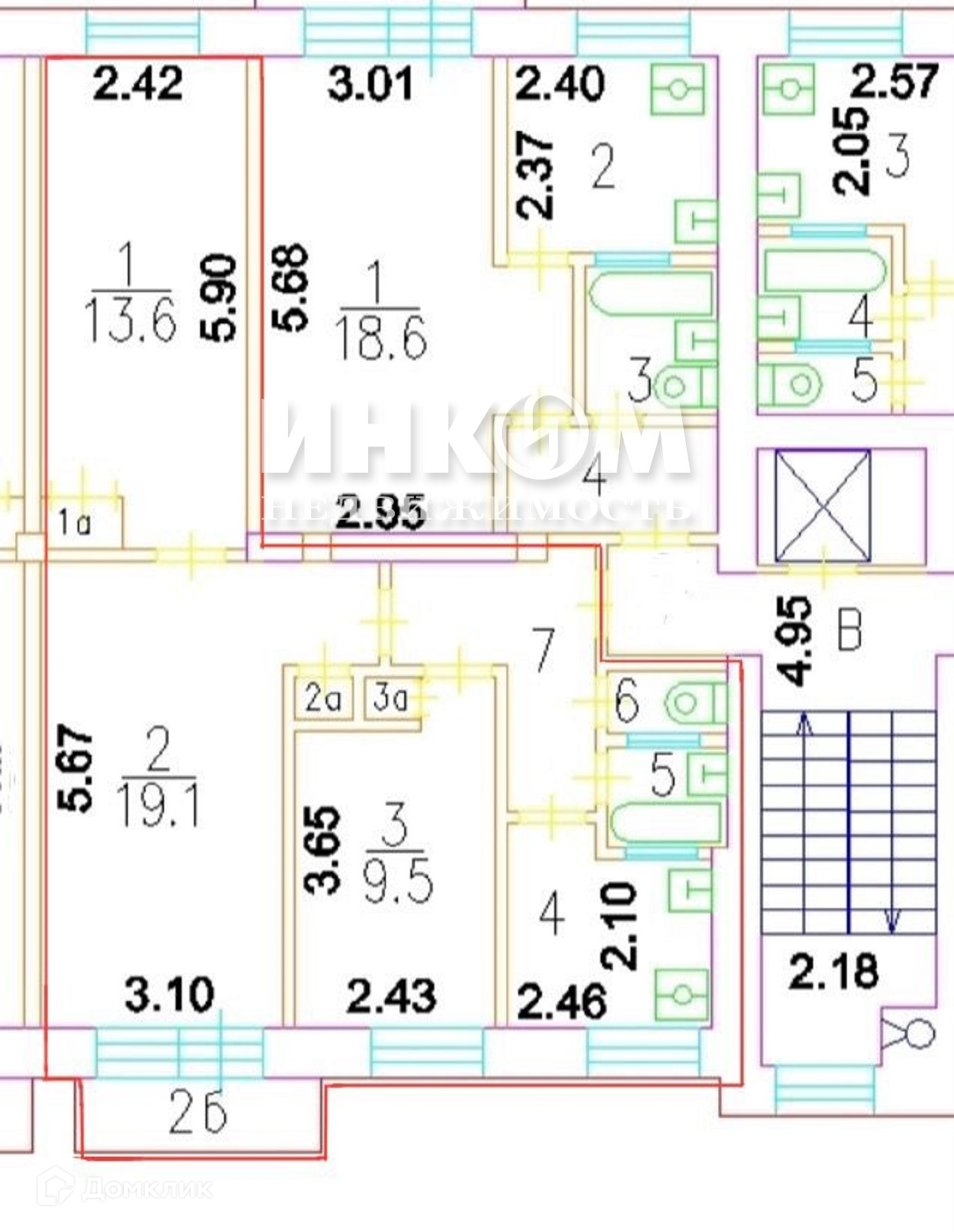 Общая площадь 57.6 м2
