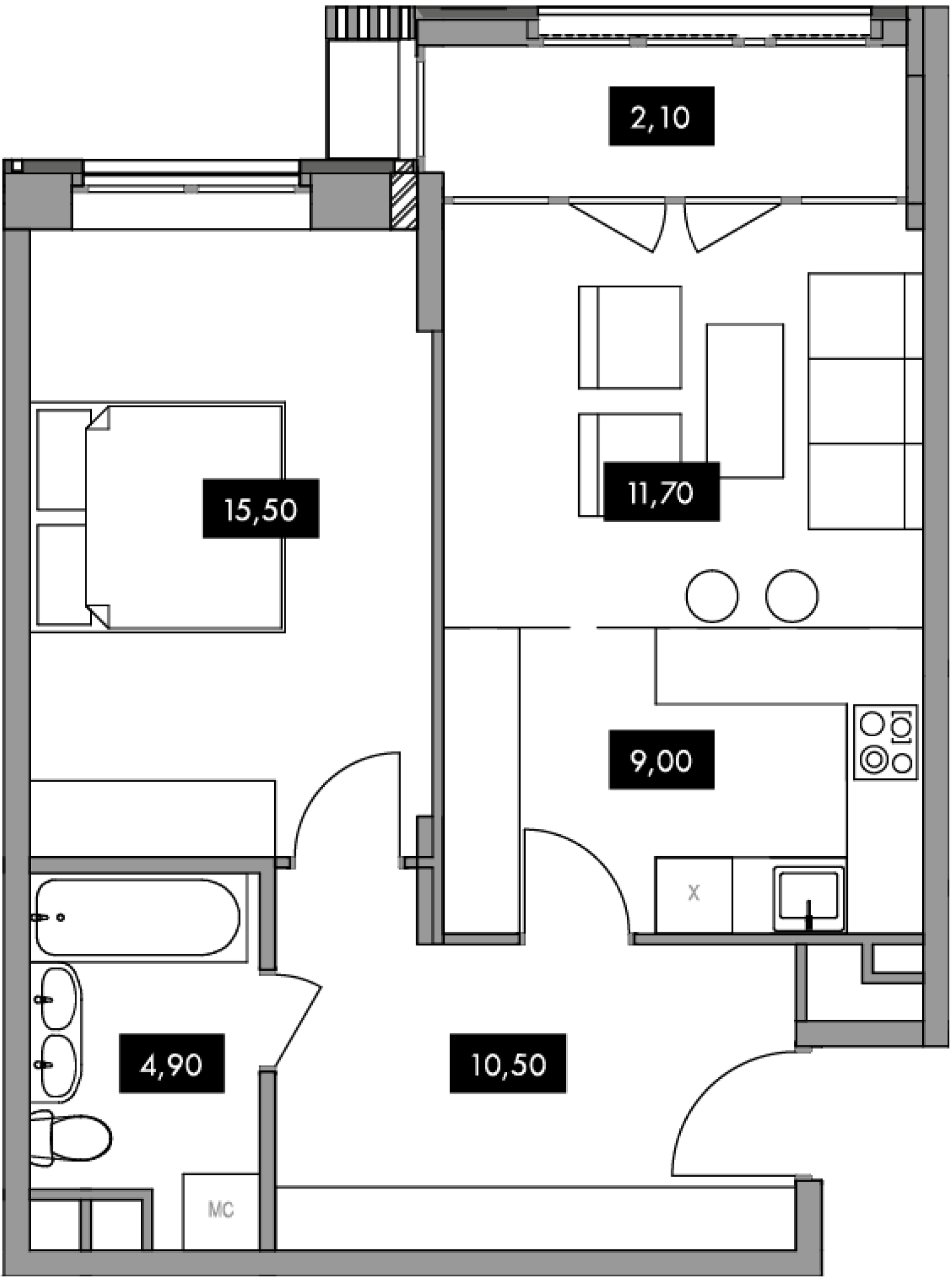 Общая площадь 51.6 м2