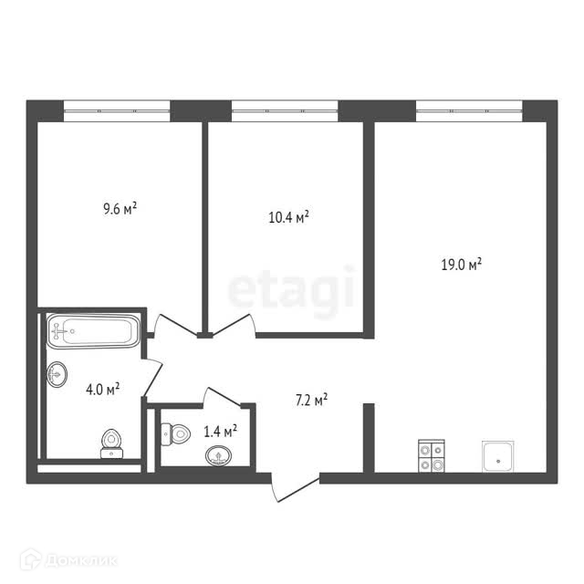 Общая площадь 51.6 м2