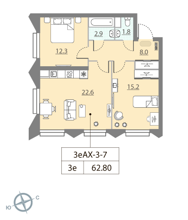В продаже ПОЛНОЦЕННАЯ 2 комн. КВАРТИРА на первой линии от МОСКВА-РЕКИ (наб.Марка Шагала), с ПАНОРАМНЫМ ОСТЕКЛЕНИЕМ, 2 с/у, правильной формы, свободной планировки, в отделке shell&core, выход окон на улицу - юго-восток