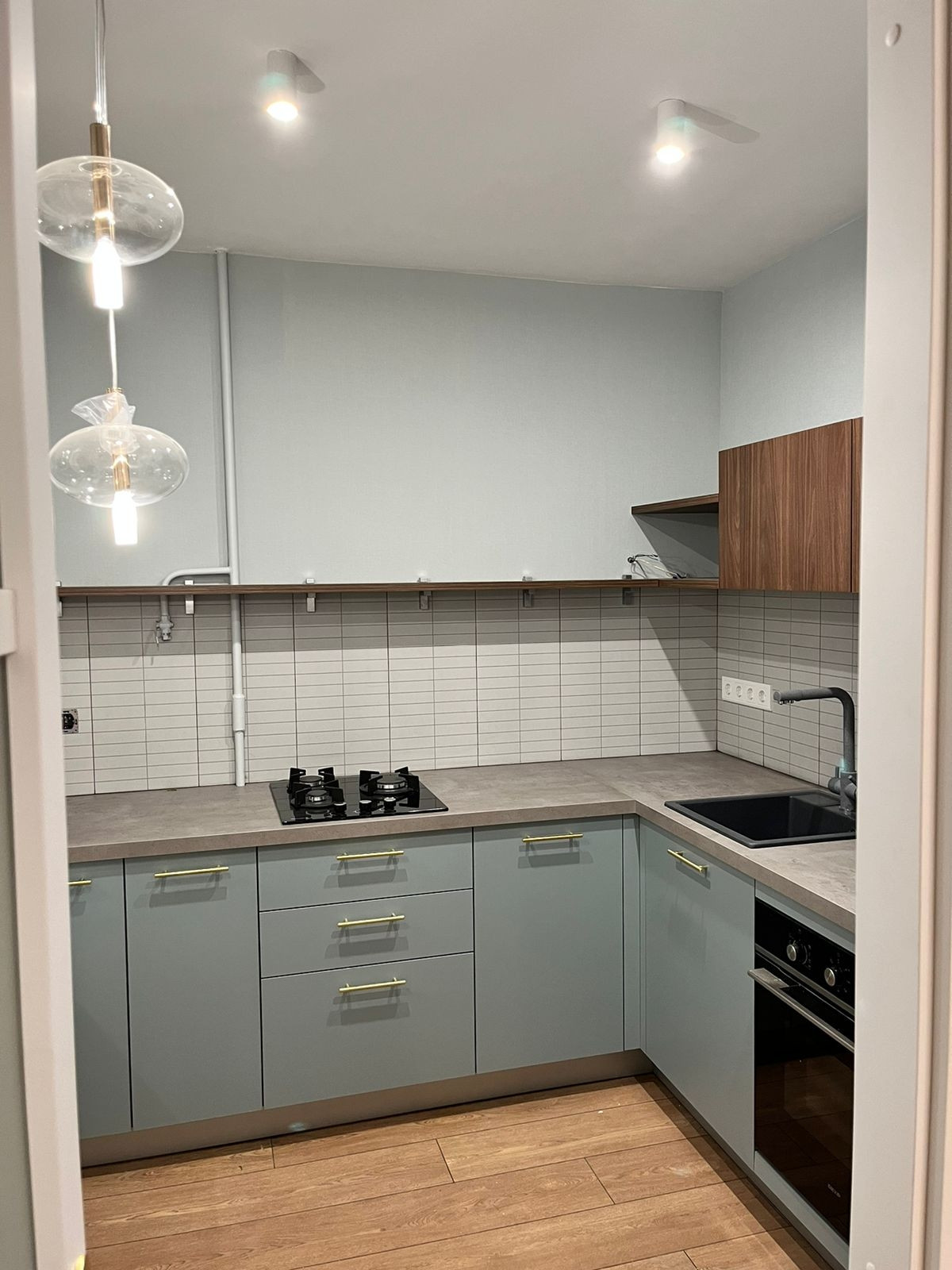 Современная кухня со встроенной техникой, немецкие обои Rasch, продуманное освещение – всё, чтобы Вы почувствовали себя как дома.
