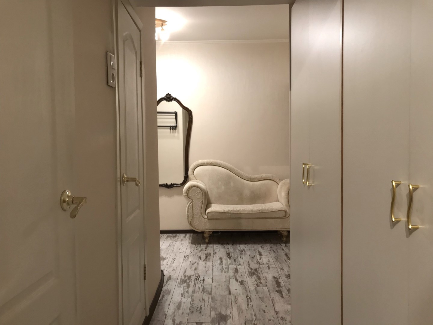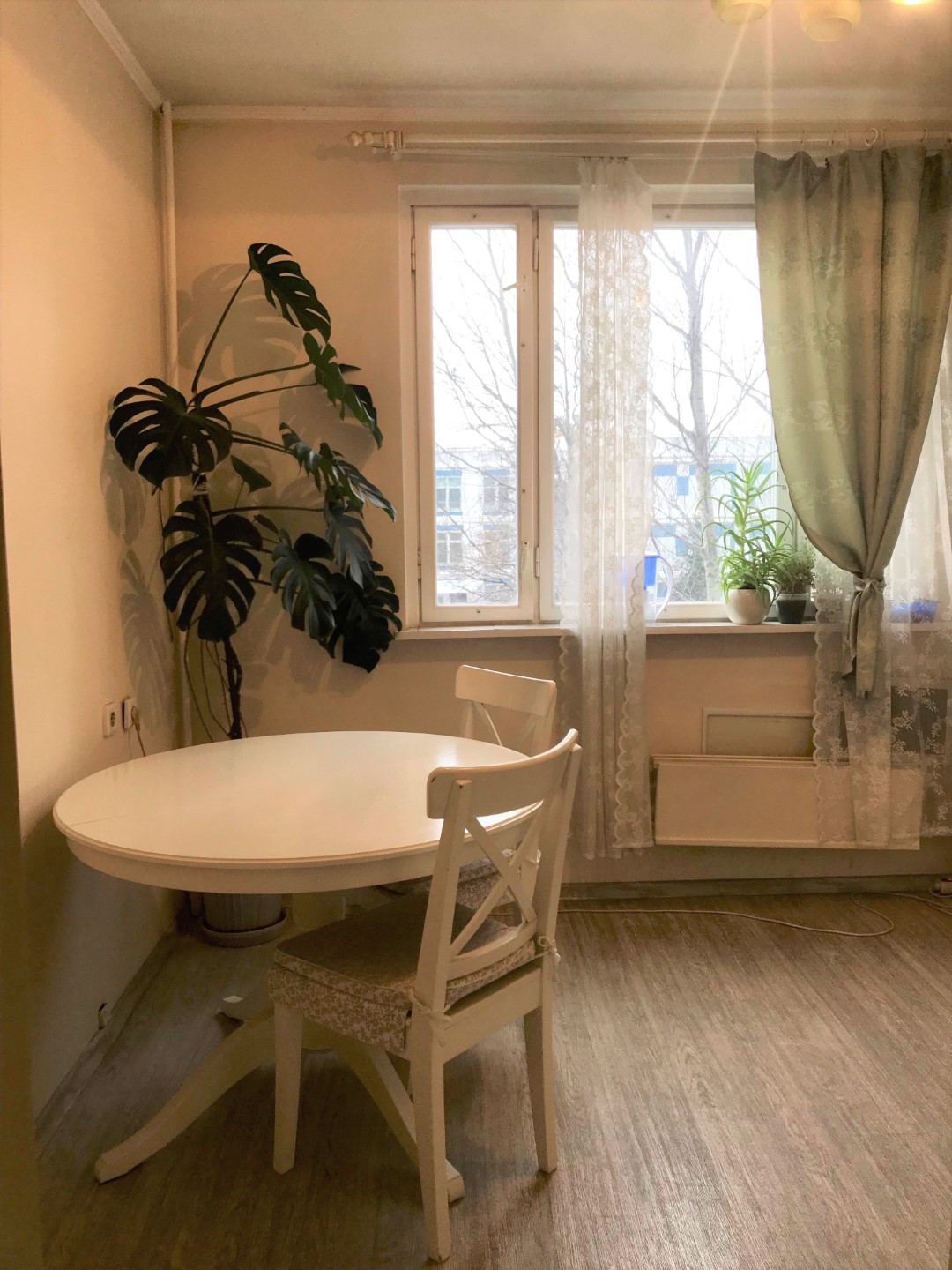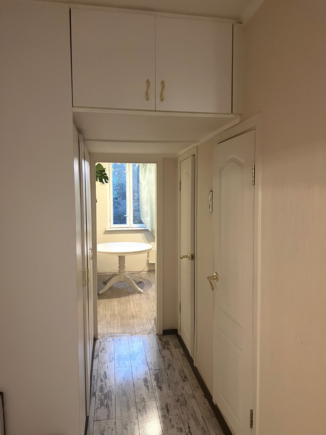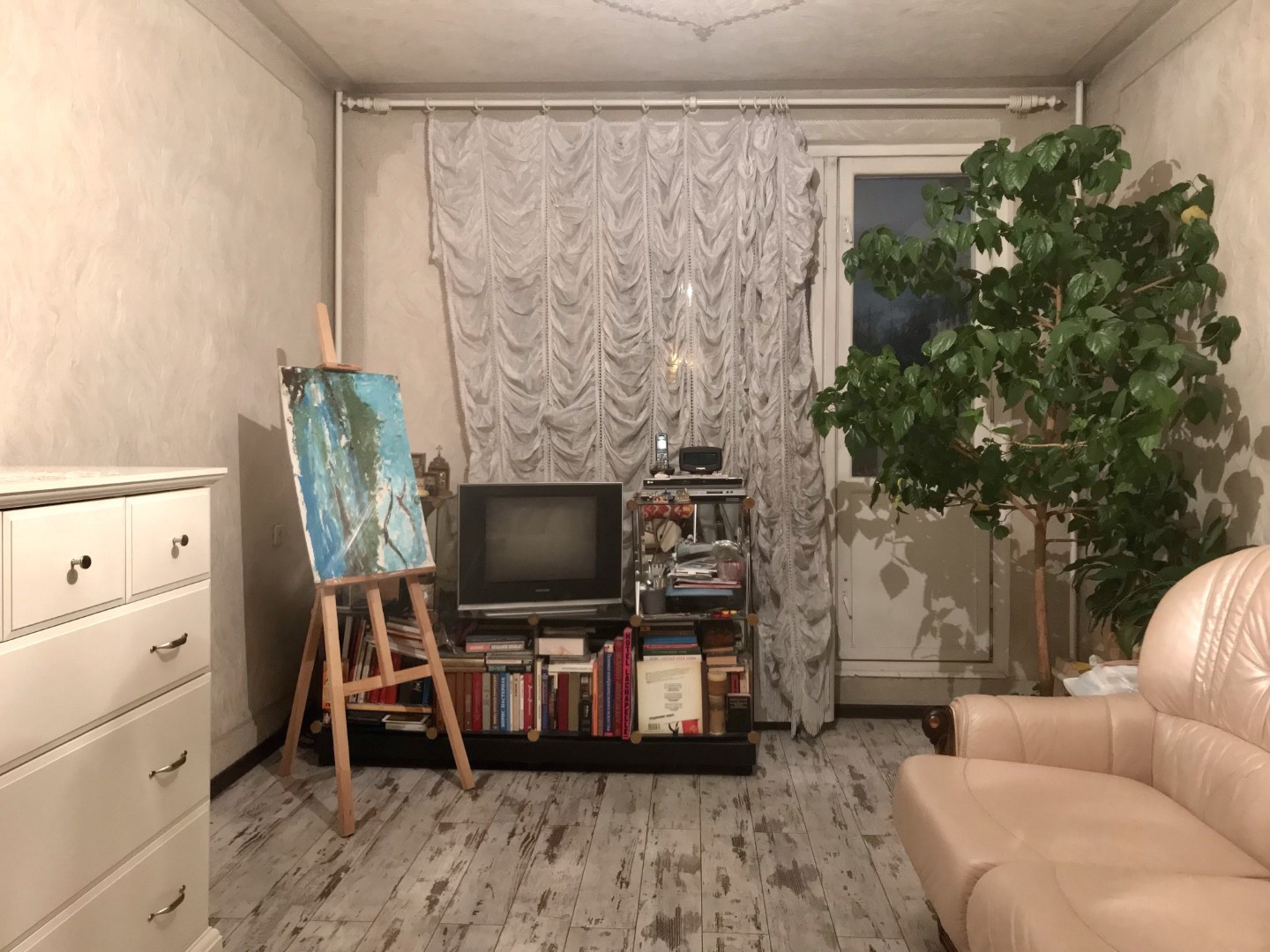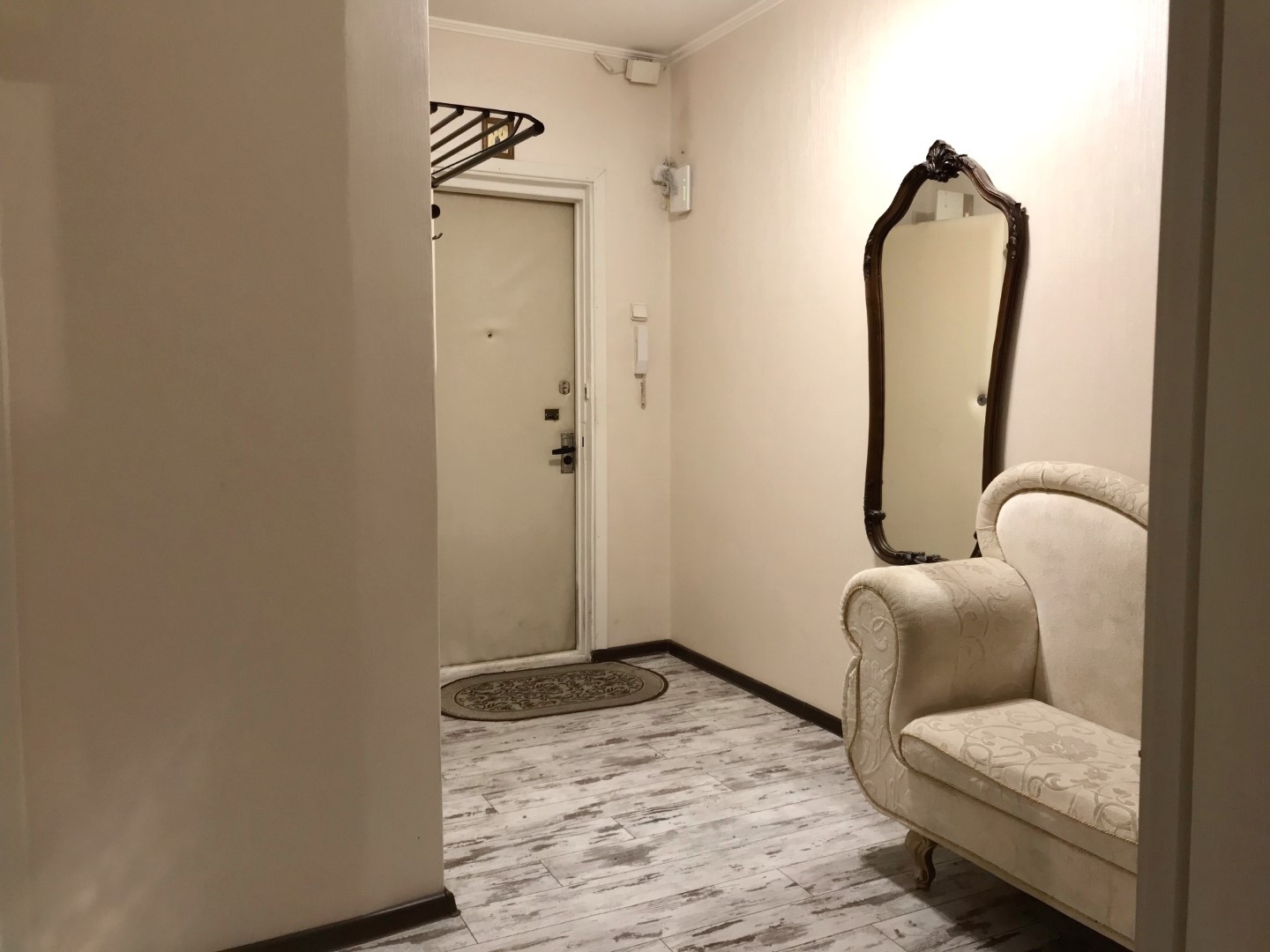 В квартире косметический ремонт (смотрите фото), пол кухни линолеум, остальные комнаты ламинат, санузел в кафеле, стеклопакеты только в маленькой комнате. Кухонная мебель, кондиционер в маленькой комнате, шкафы – все остается.