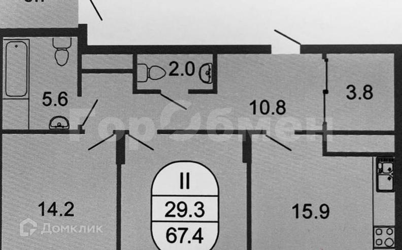 Общая площадь 68 м2