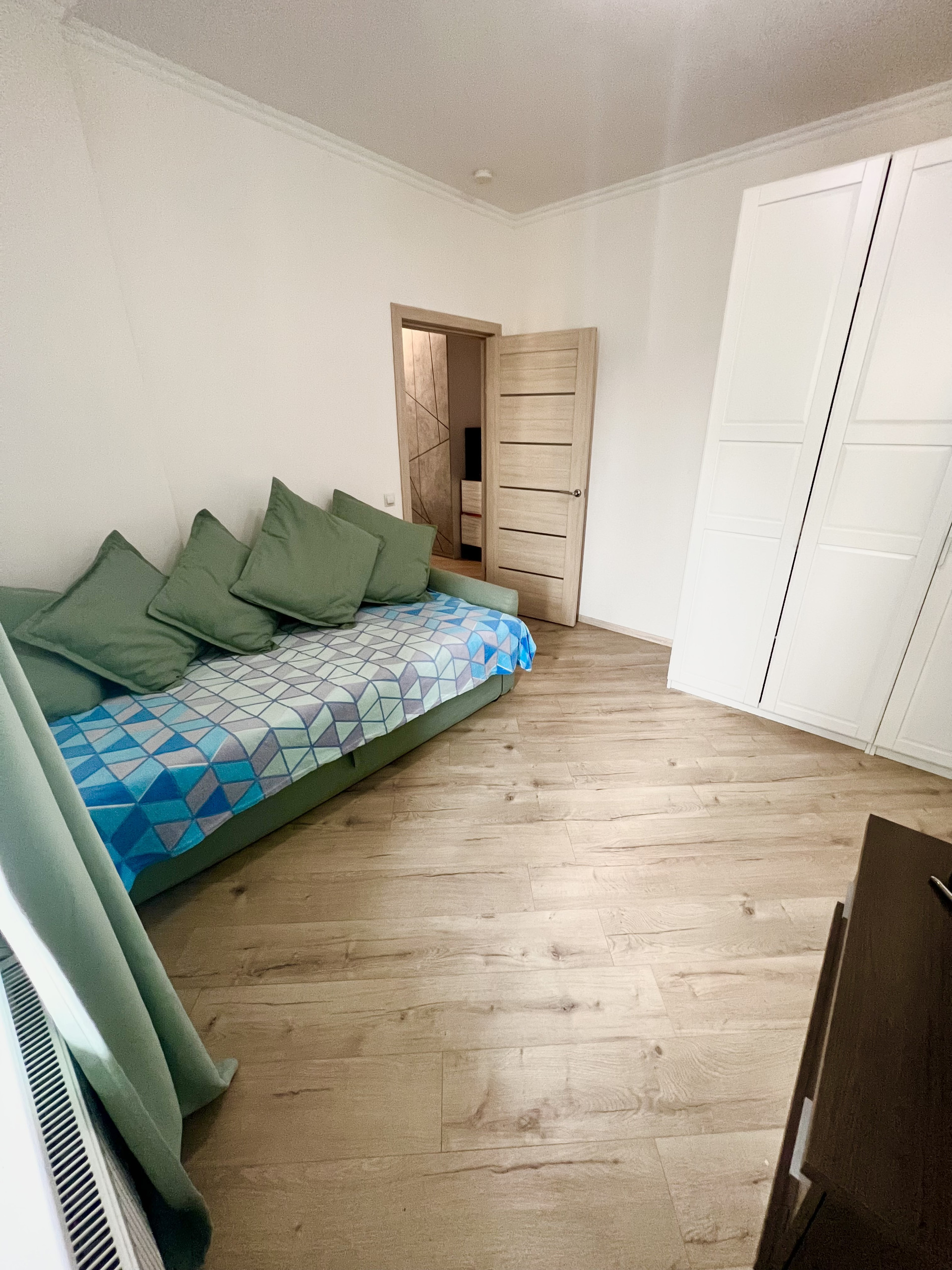 Выполнен аккуратный ремонт, отличная планировка, квартира распашонка с изолированными комнатами, из спальни выход на балкон с панорамными окнами, встроенная кухня.