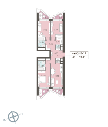Общая площадь 98 м2