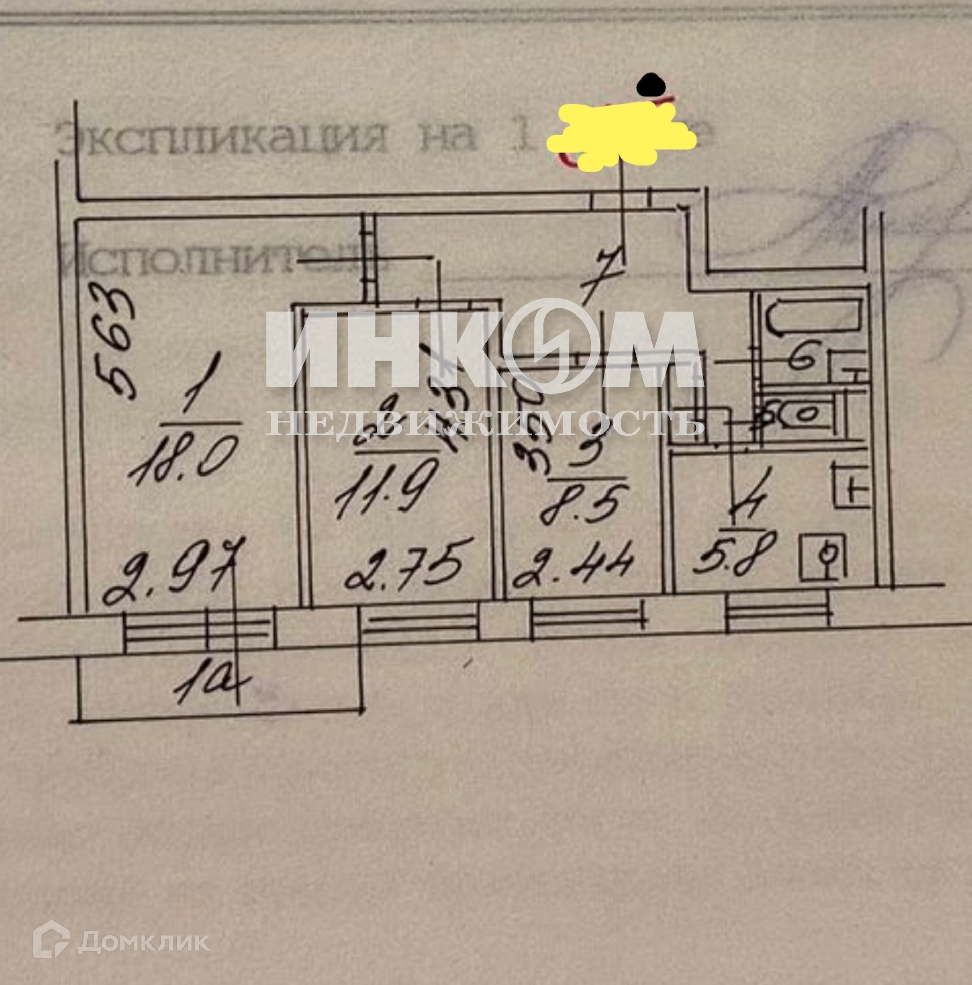 Жилая площадь 38.4 м2