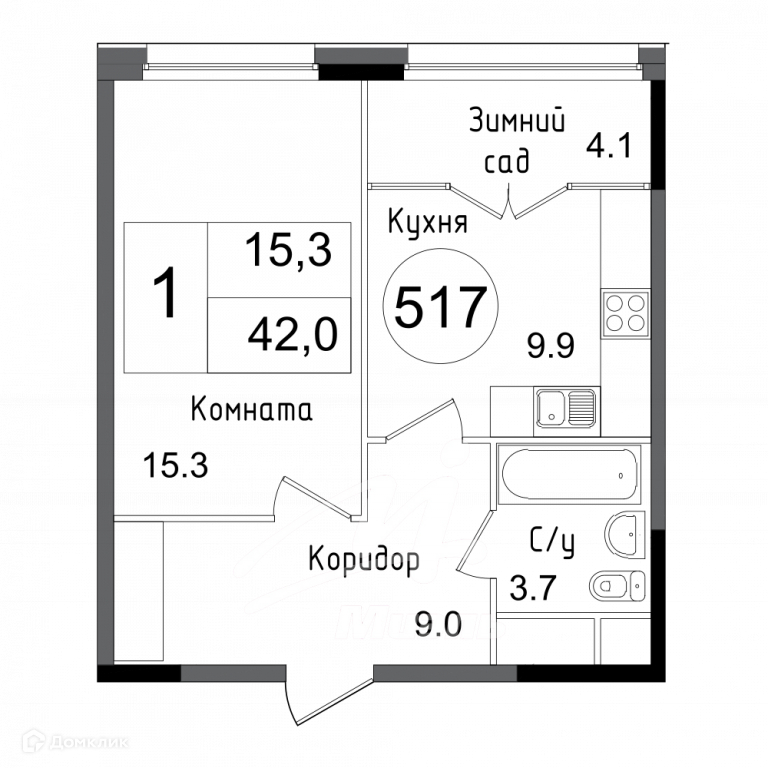 Общая площадь 41.7 м2