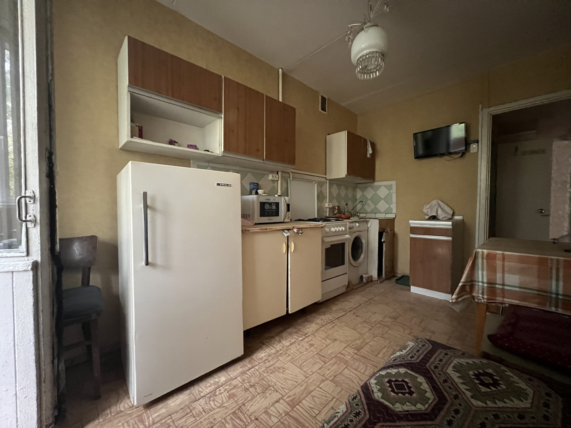 Паркетный пол, электрика, сантехническое оборудование в хорошем состоянии, остальное требует косметического ремонта.