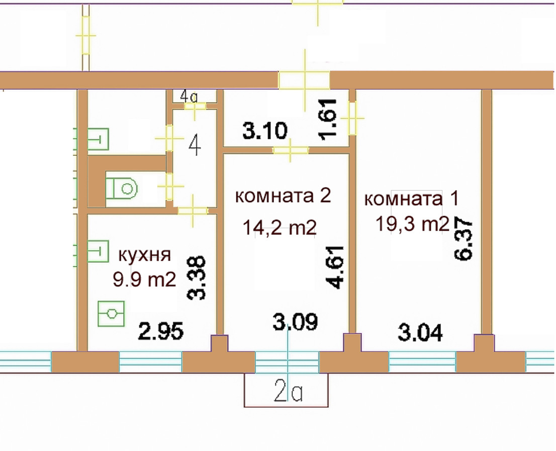 Общая площадь 56 м2