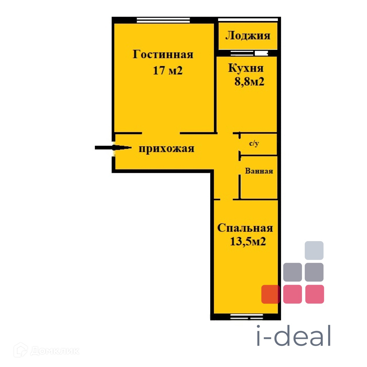 Жилая площадь 30.5 м2