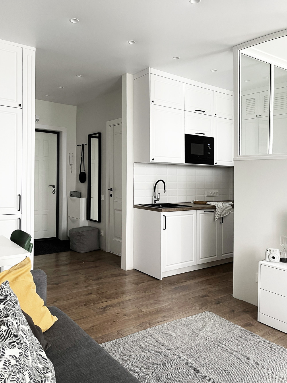 Окно — хороший пластиковый стеклопакет, вид во двор. Металлическая входная дверь, совмещенный санузел, кухонная зона, индивидуальные приборы учета. Студия продается с предчистовым ремонтом. Ремонт "под ключ" выполняется по желанию за дополнительную плату. На фото дизайн-проект аналогичной студии.