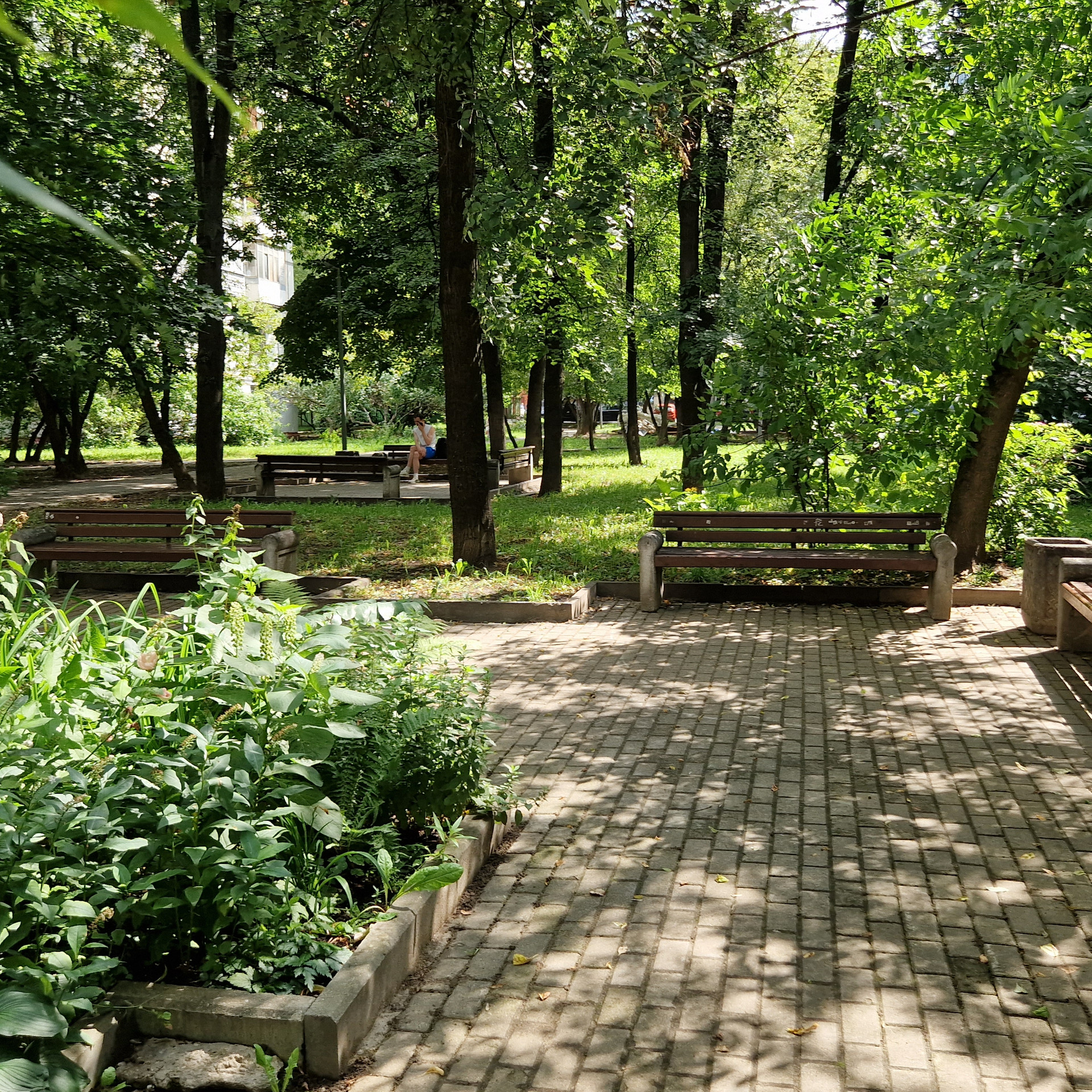 Во дворе уютный зелёный скверик, есть детская и спортивная площадки.