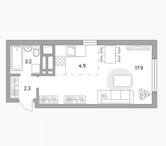 Осталась в продаже просторная 29 м2 квартира, расположенная в новом корпусе на пятом этаже монолитно-кирпичного дома. - CЕГОДНЯ по специальной выгодной цене.