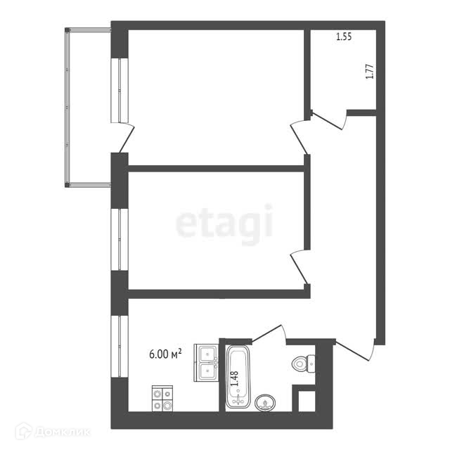 Балкон, лоджия 1 балкон