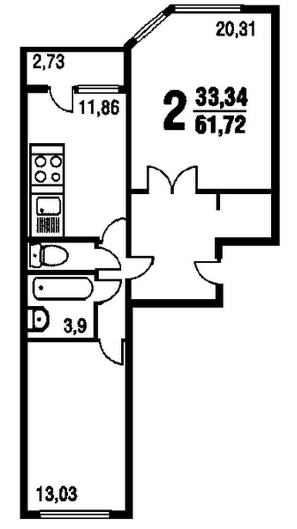 Жилая площадь 33.3 м2