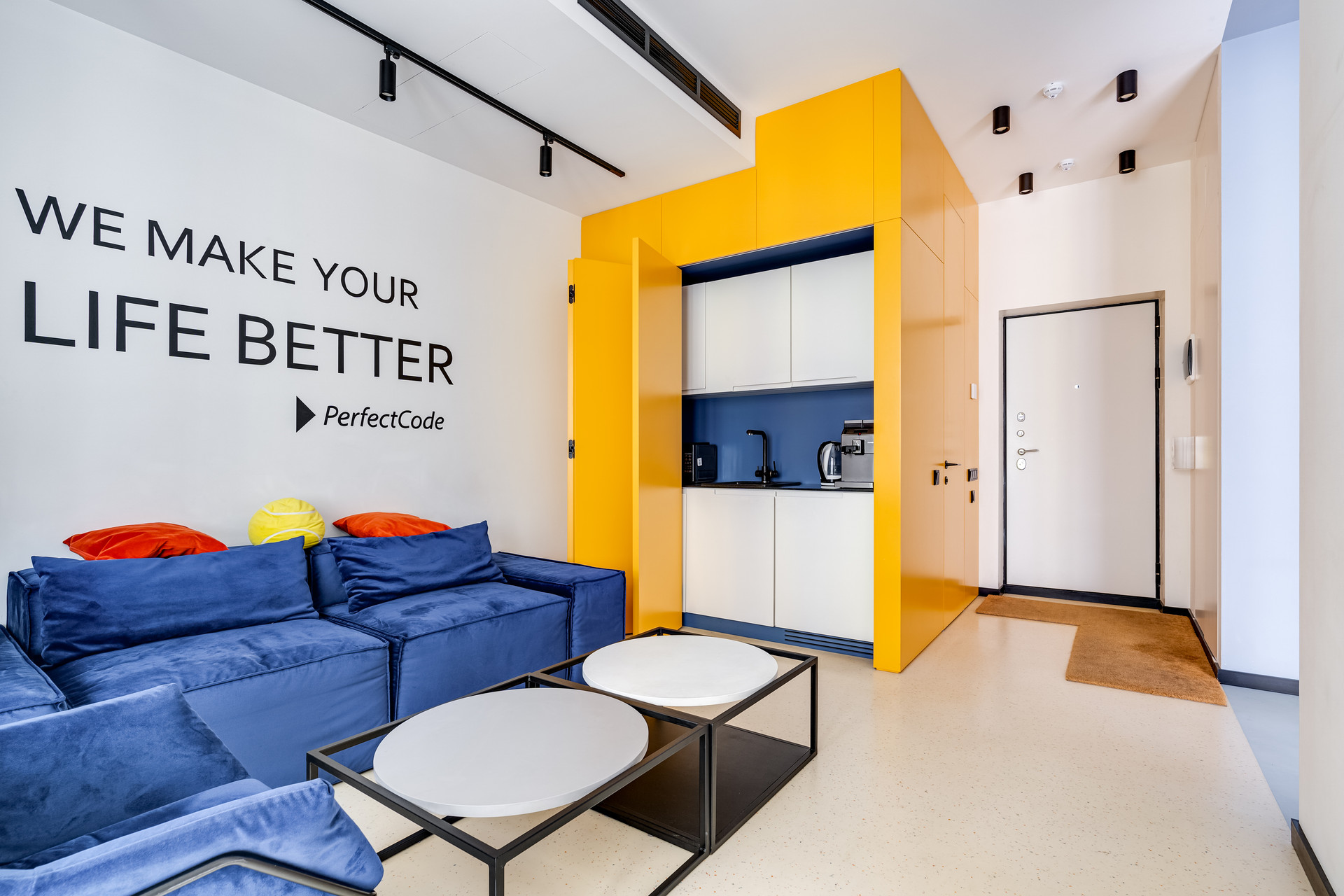 При высоте потолков 3м и панорамному остеклению в апартаментах ощущается дополнительный объем пространства.