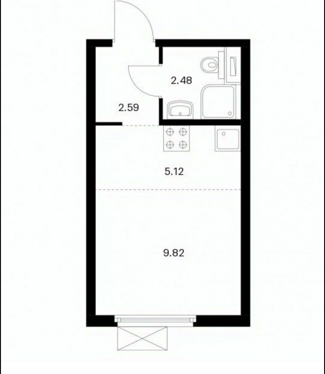 Жилая площадь 9.82 м2