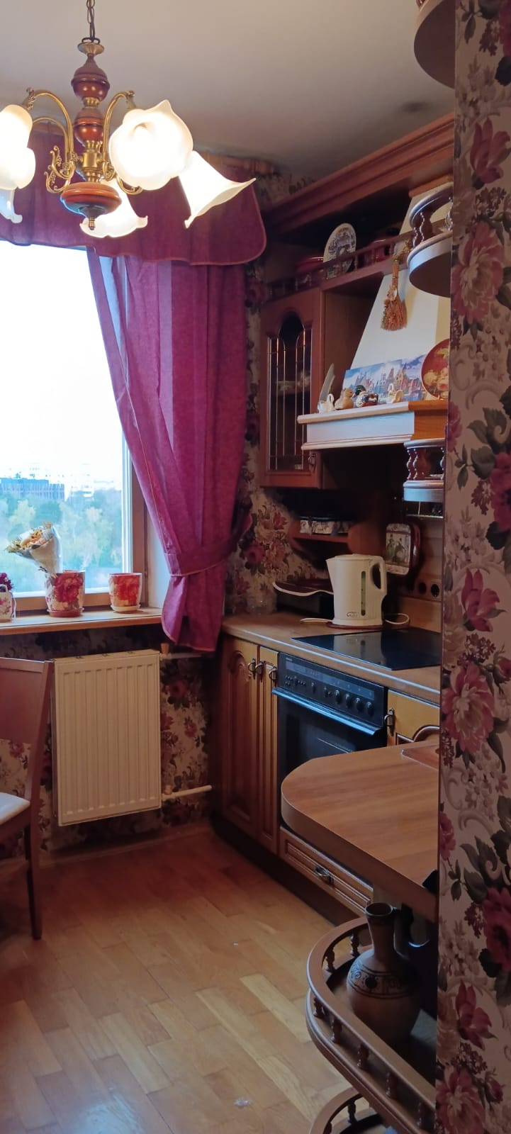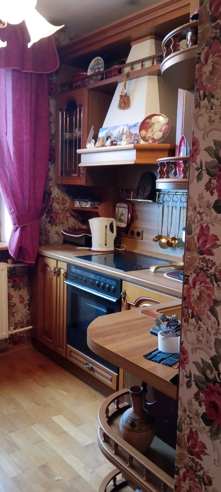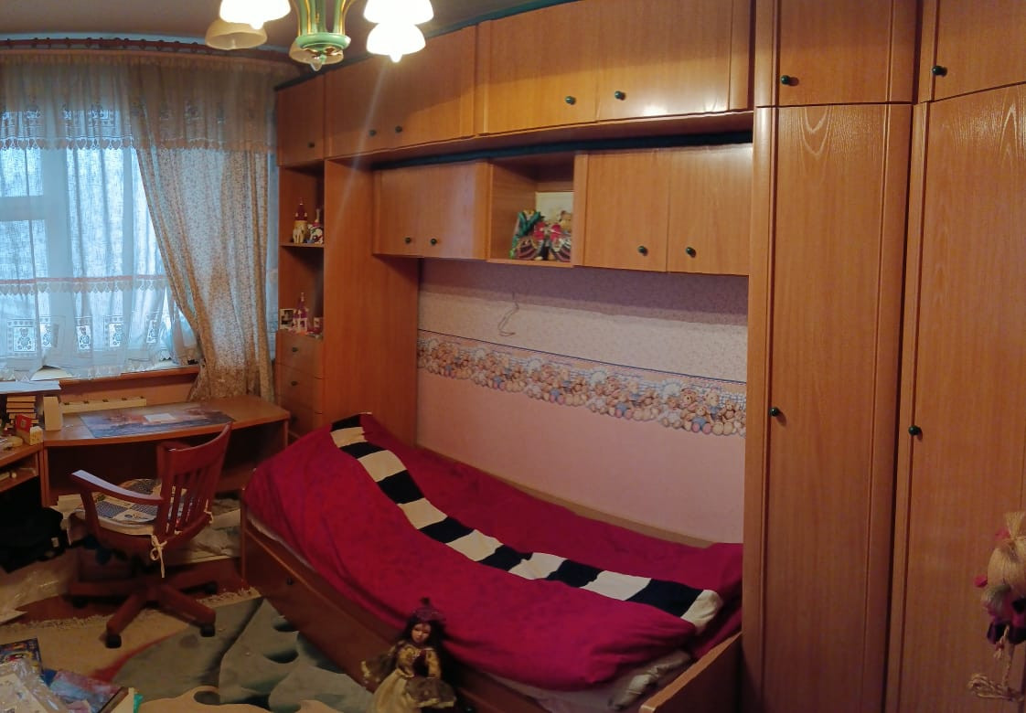 Квартира продается с мебелью и техникой! В зале мягкая мебель уникальна отделка шелк и гобелен, идет в комплекте со шторами. Спальня ручной работы, шкаф, кровать, стол, стул все массив дерева. Детская комната деревянная мебель полностью, стол компьютерный, стул ручной работы. Ящики выдвижные у спального места, угловой шкаф, комод. Ванная комната в кафеле, установлена душевая кабина и так же сохранена ванна.