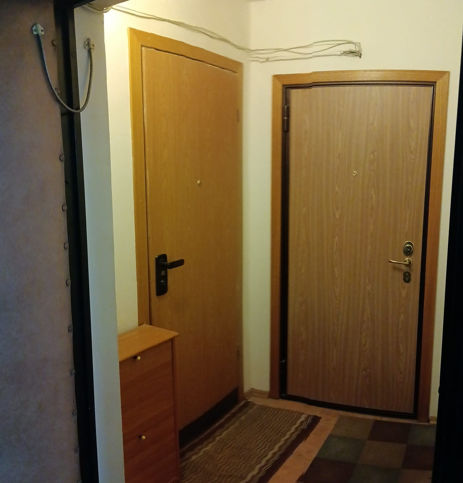 На этаже четыре квартиры, по две в разные стороны, на две сделан тамбур. Хорошие, доброжелательные соседи, чистый подъезд, два лифта.