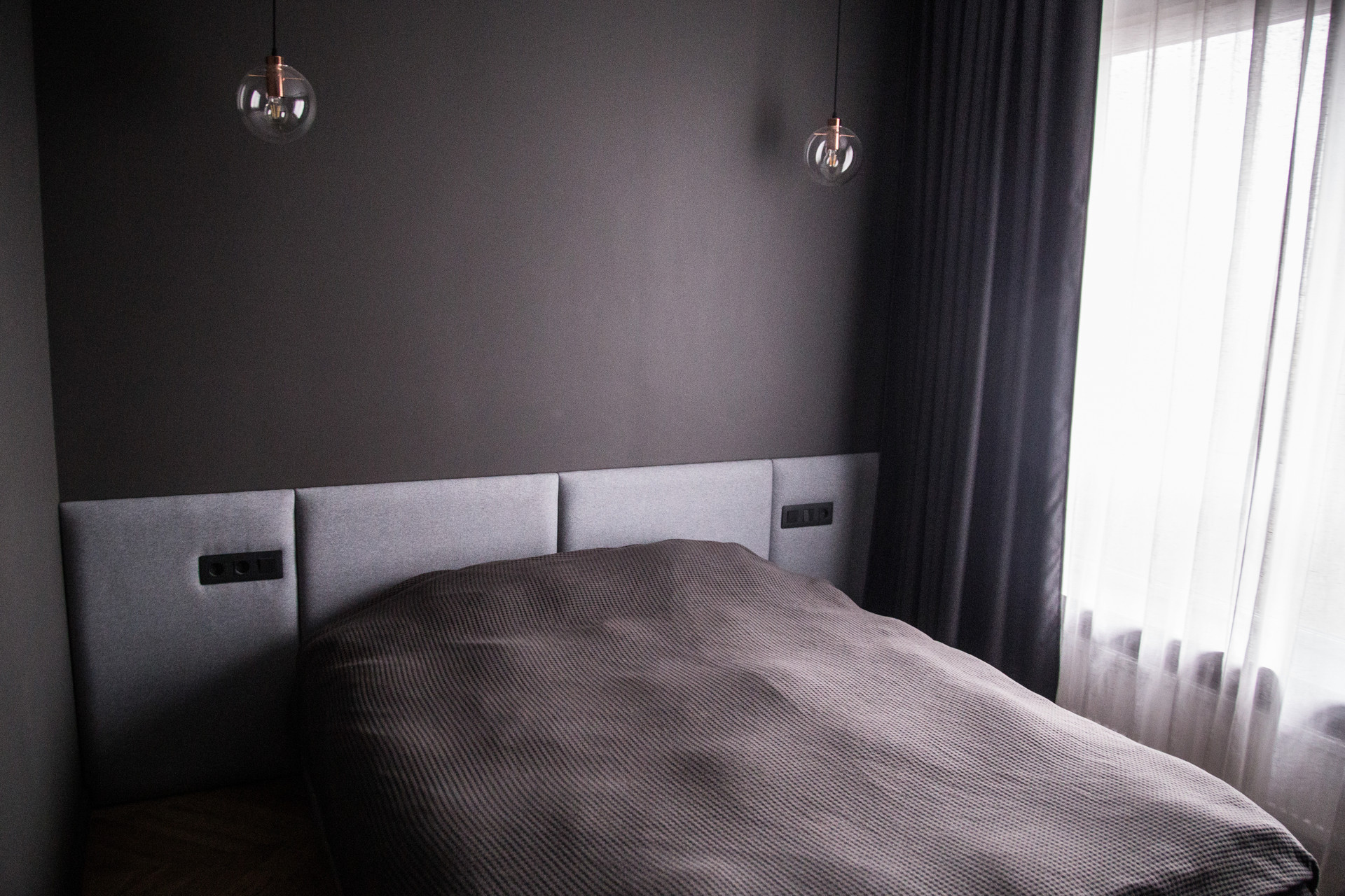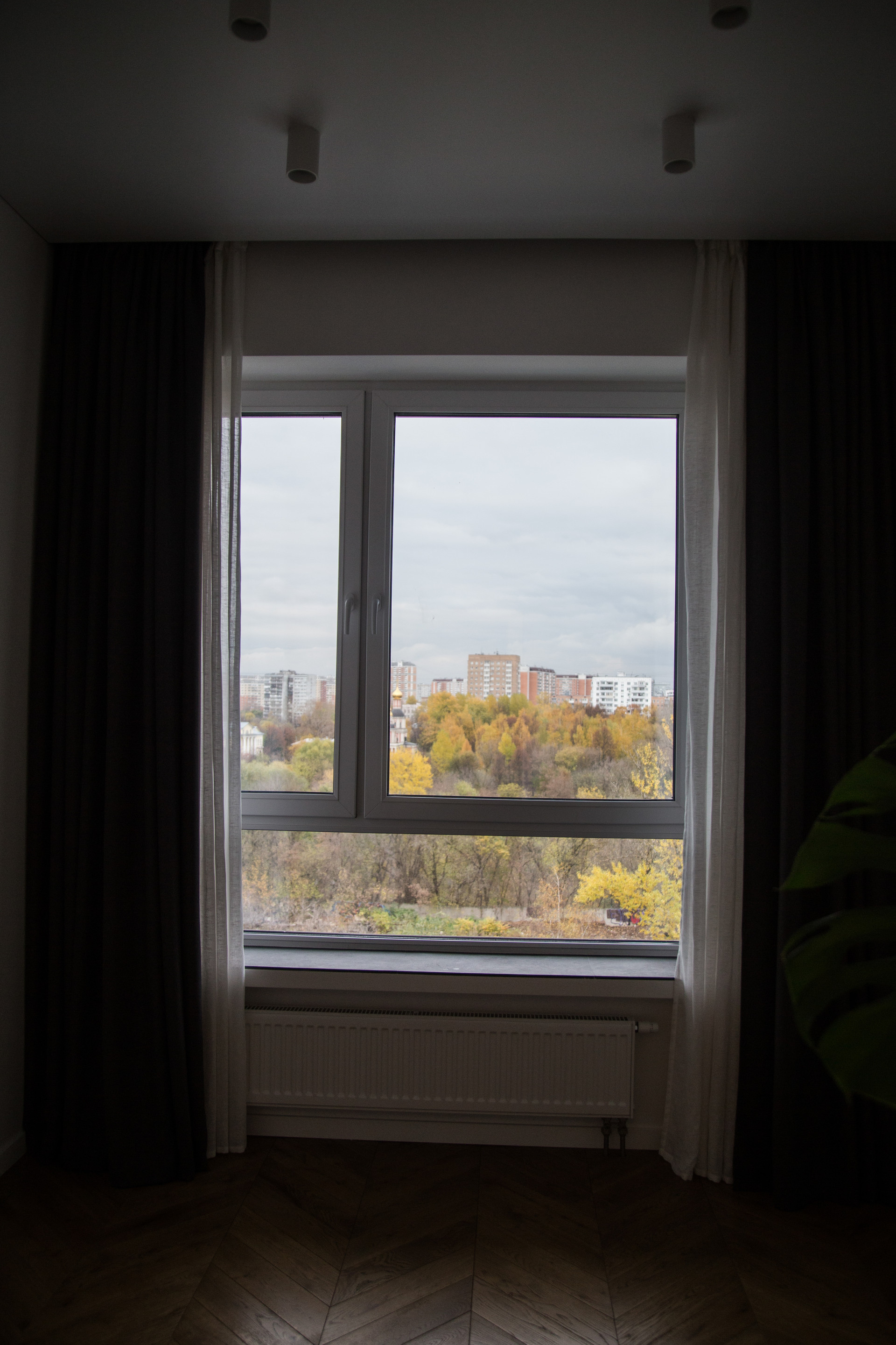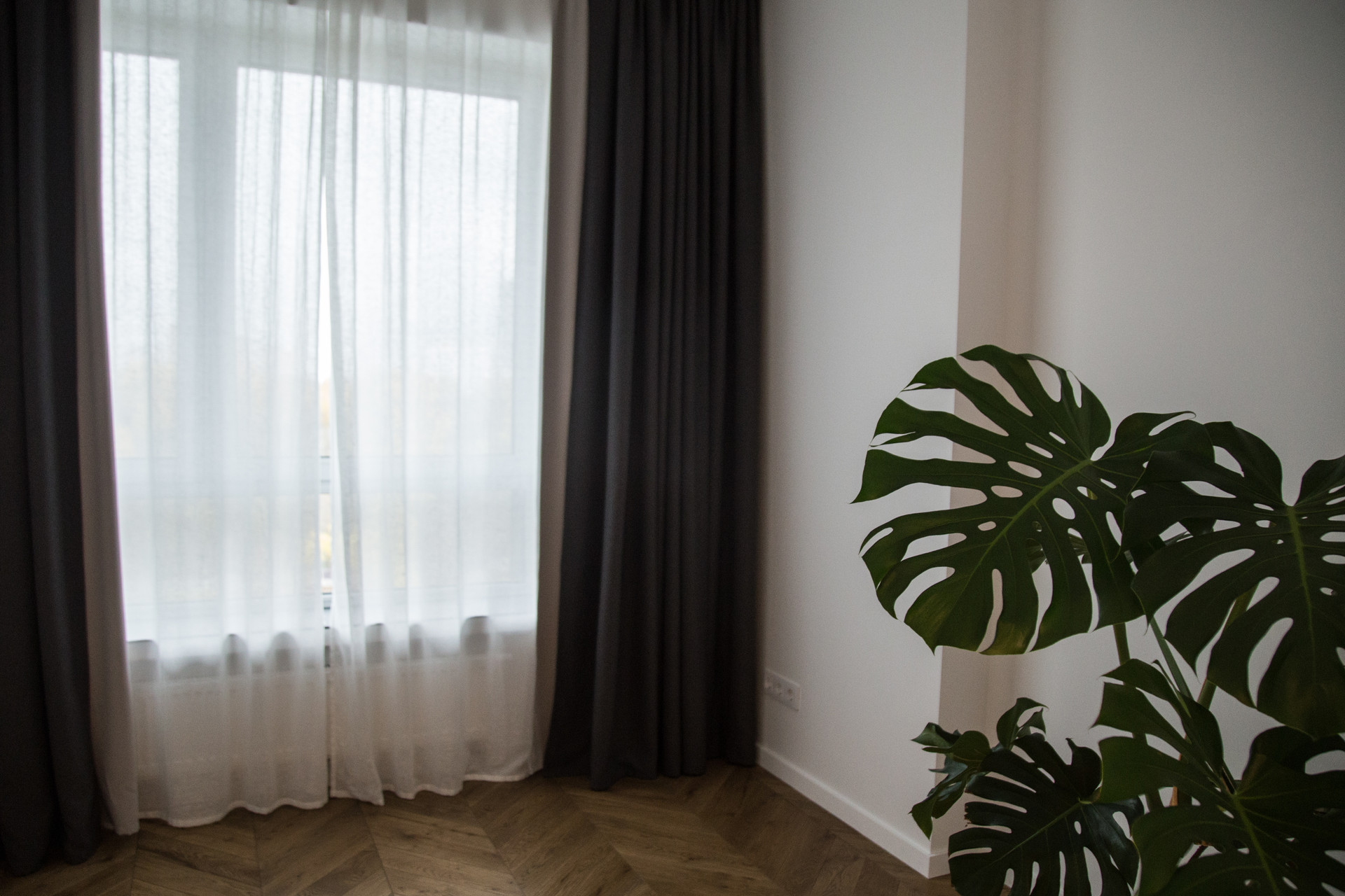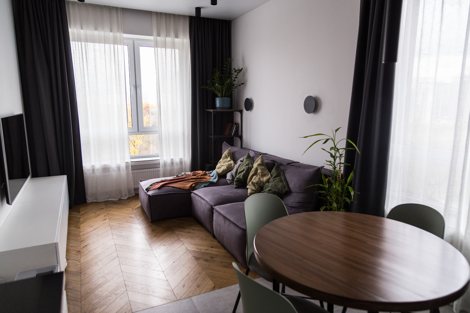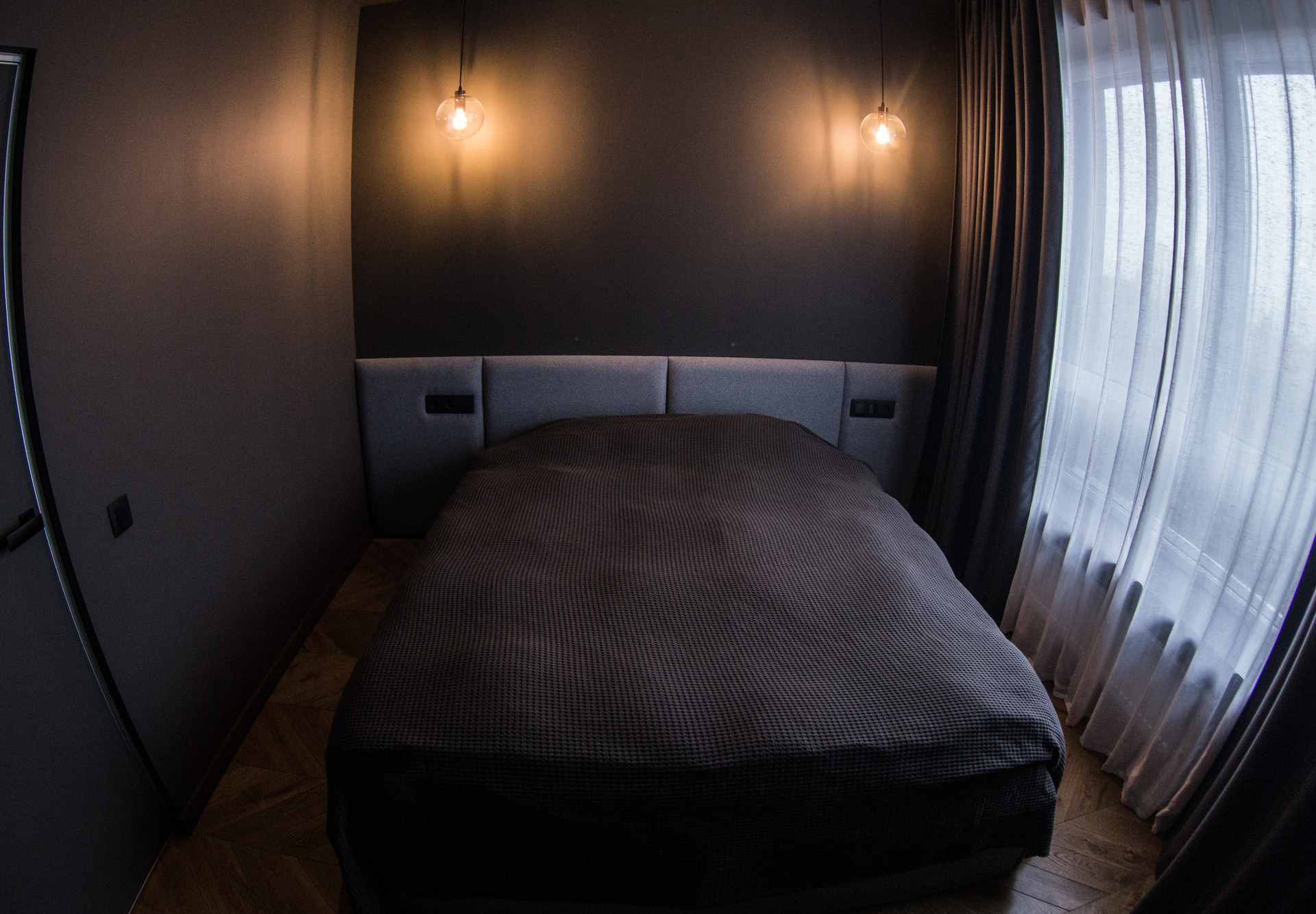 В двух комнатах установлено по 3 комплекта штор для создания 100% black out, в кухне-гостиной 95%.