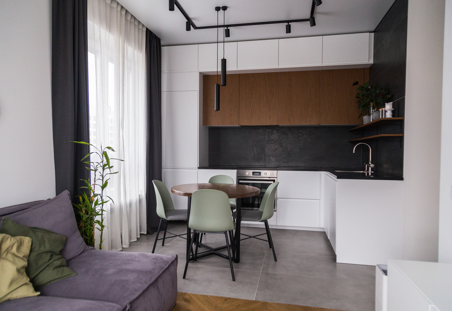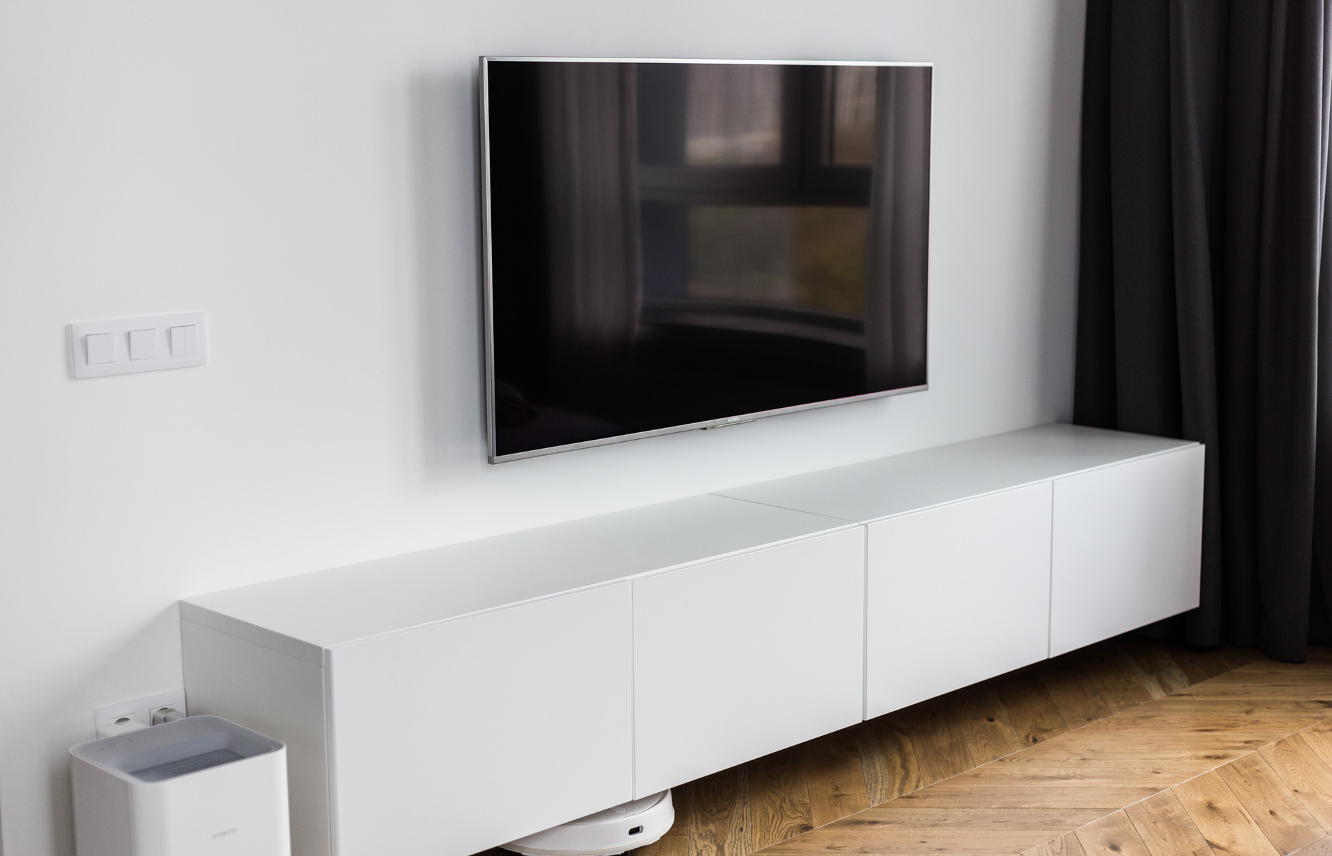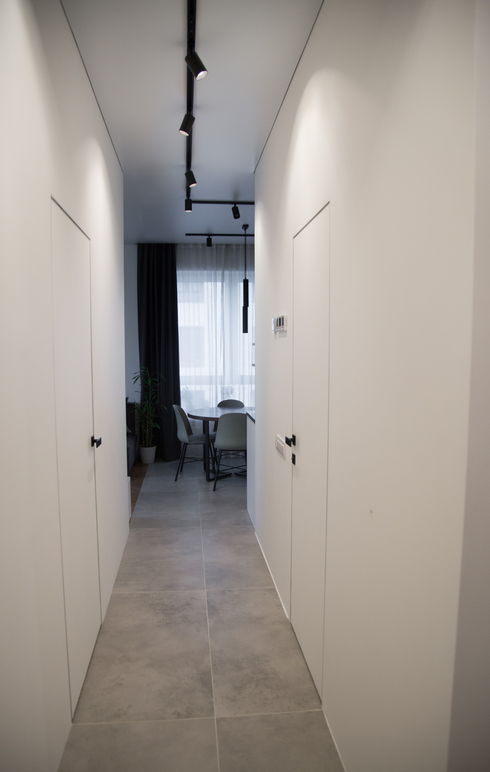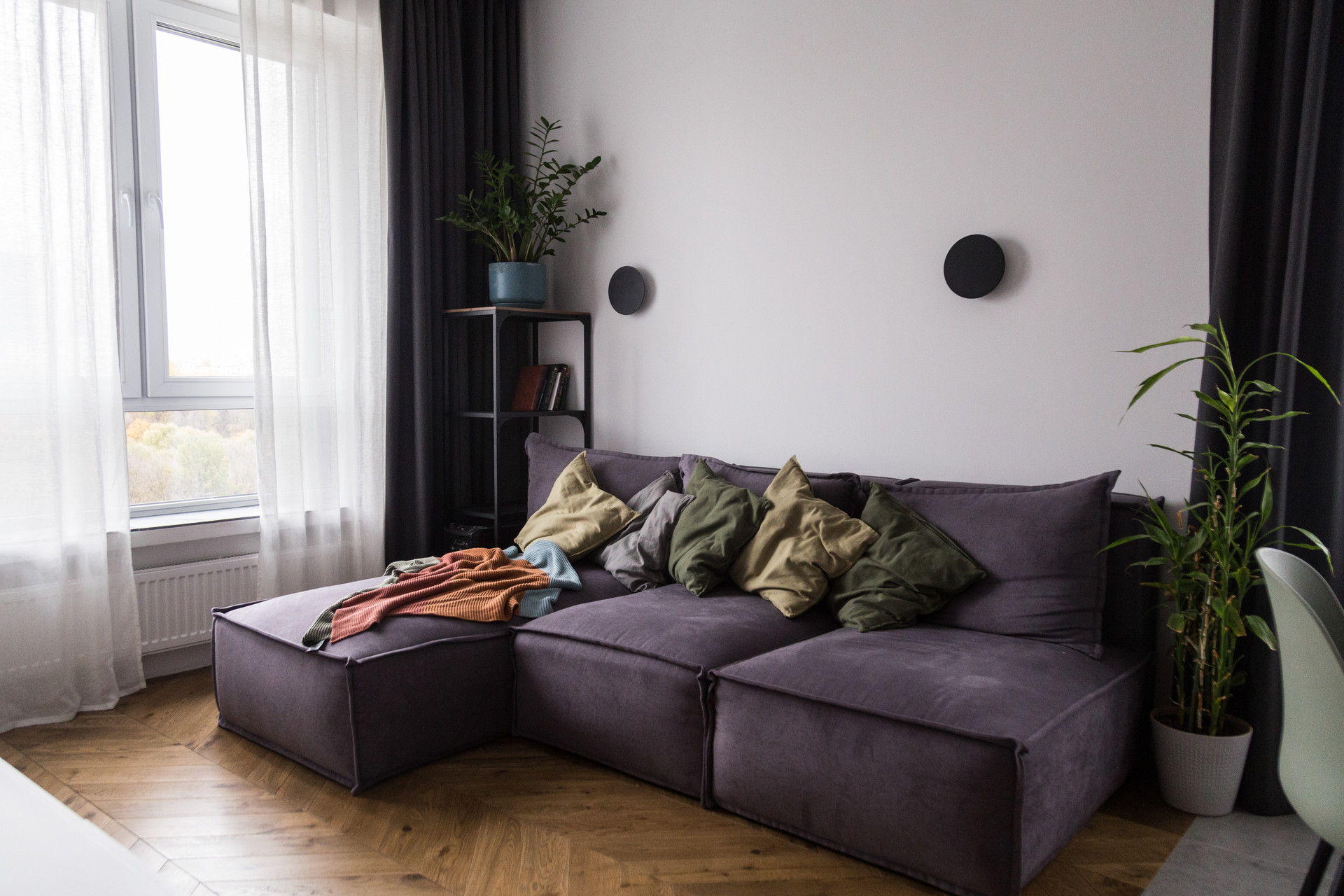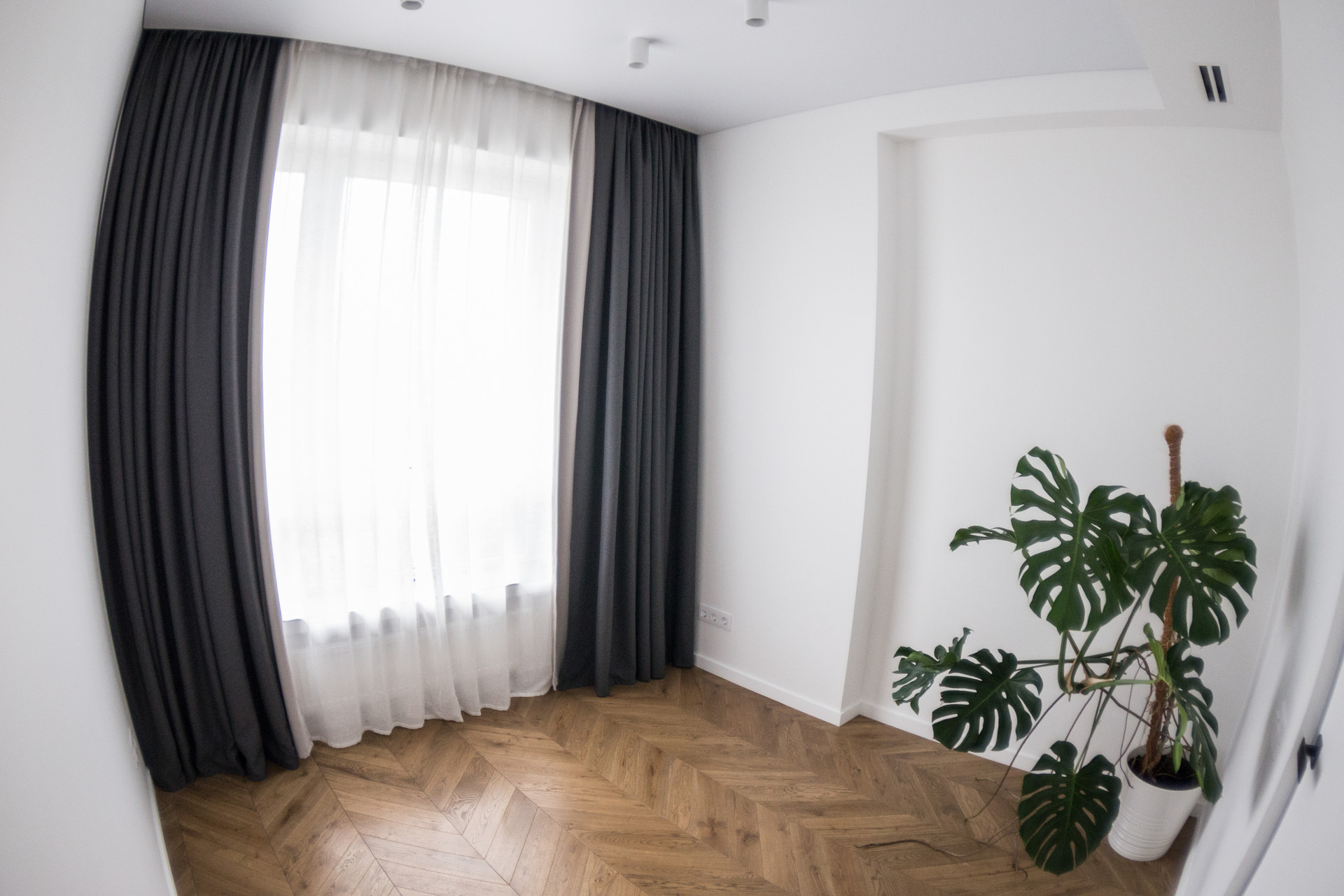 В двух комнатах установлено по 3 комплекта штор для создания 100% black out, в кухне-гостиной 95%.