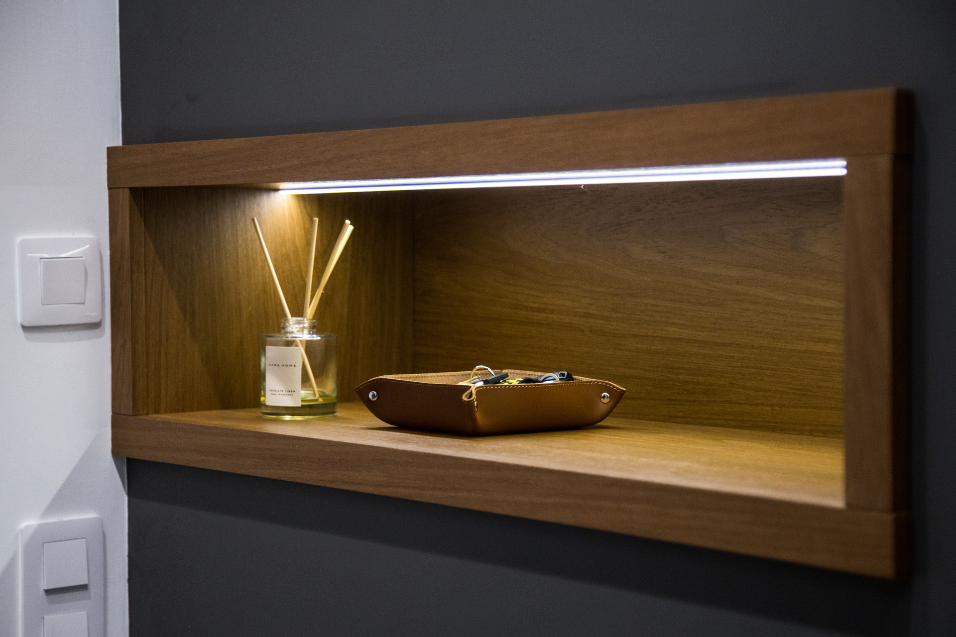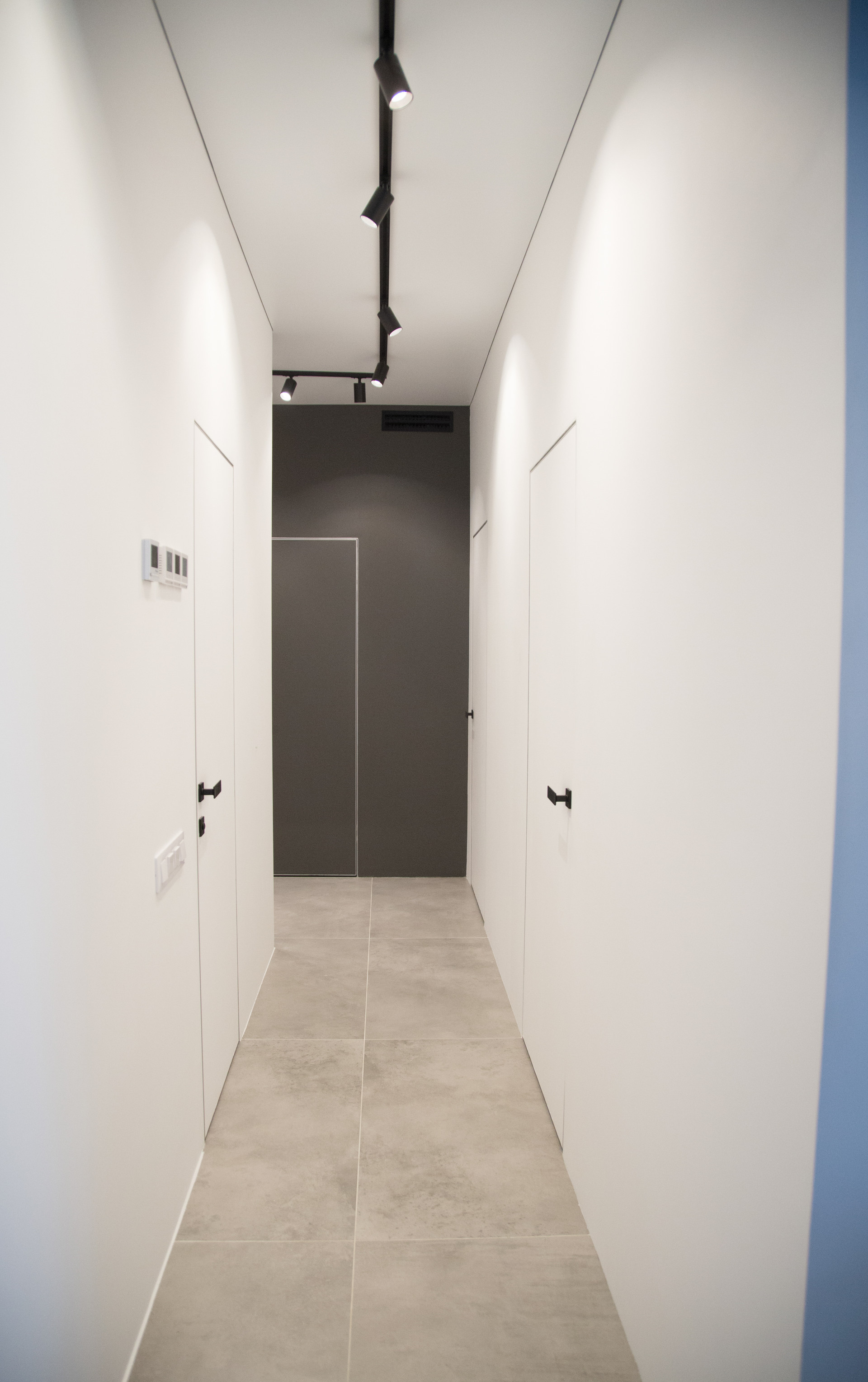 В квартире установлены рейловые светильники, вы можете менять направление света, добавлять или убирать лампы.