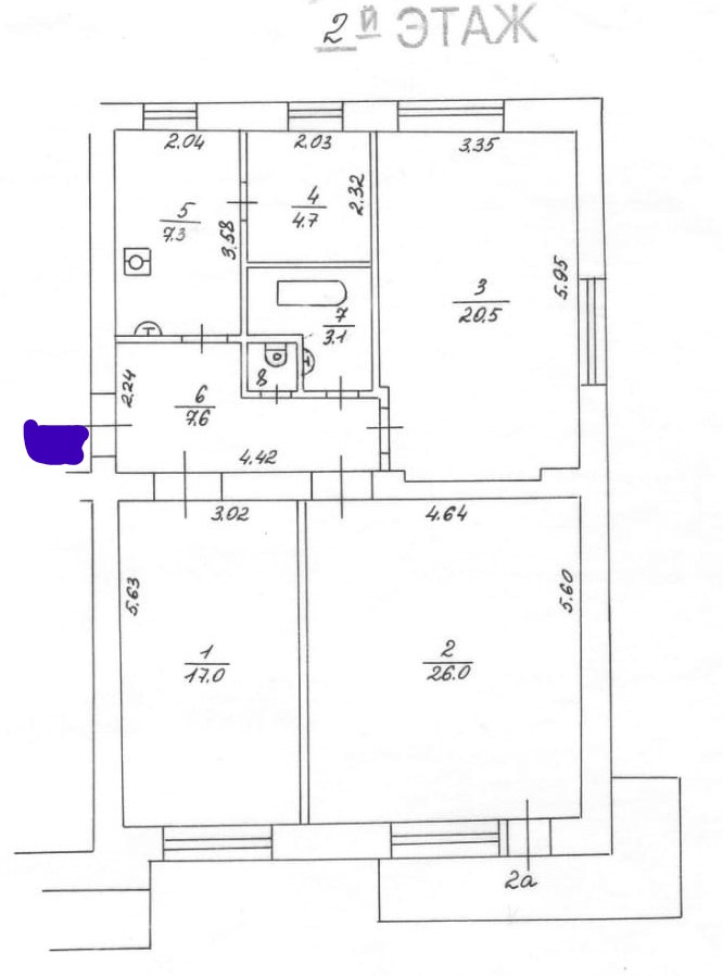 Квартира (площадь 87,1 кв.м. без учета балкона) имеет 3 просторные, раздельные комнаты ( 17-26-20,5 кв.м.) и одну смежную с кухней (комната для прислуги 4,5 кв.м.), балкон  4 кв.м., высота потолков 3 м.