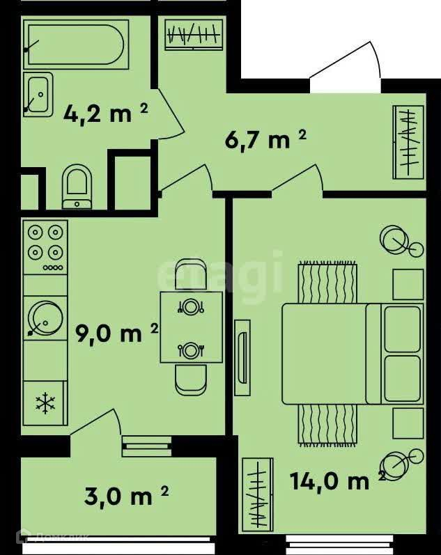 Общая площадь 35.4 м2