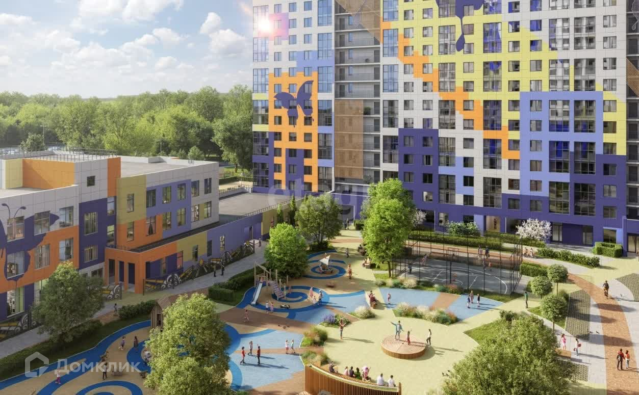 Преимущества жилого комплекса - благоустроенный двор без машин, оснащенный игровыми площадками, детским садом, магазинами, фитнес-центр и другое.