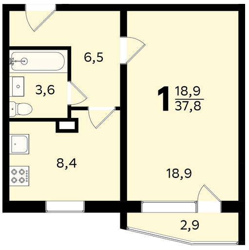 * Однокомнатная квартира, 37.9 кв. м