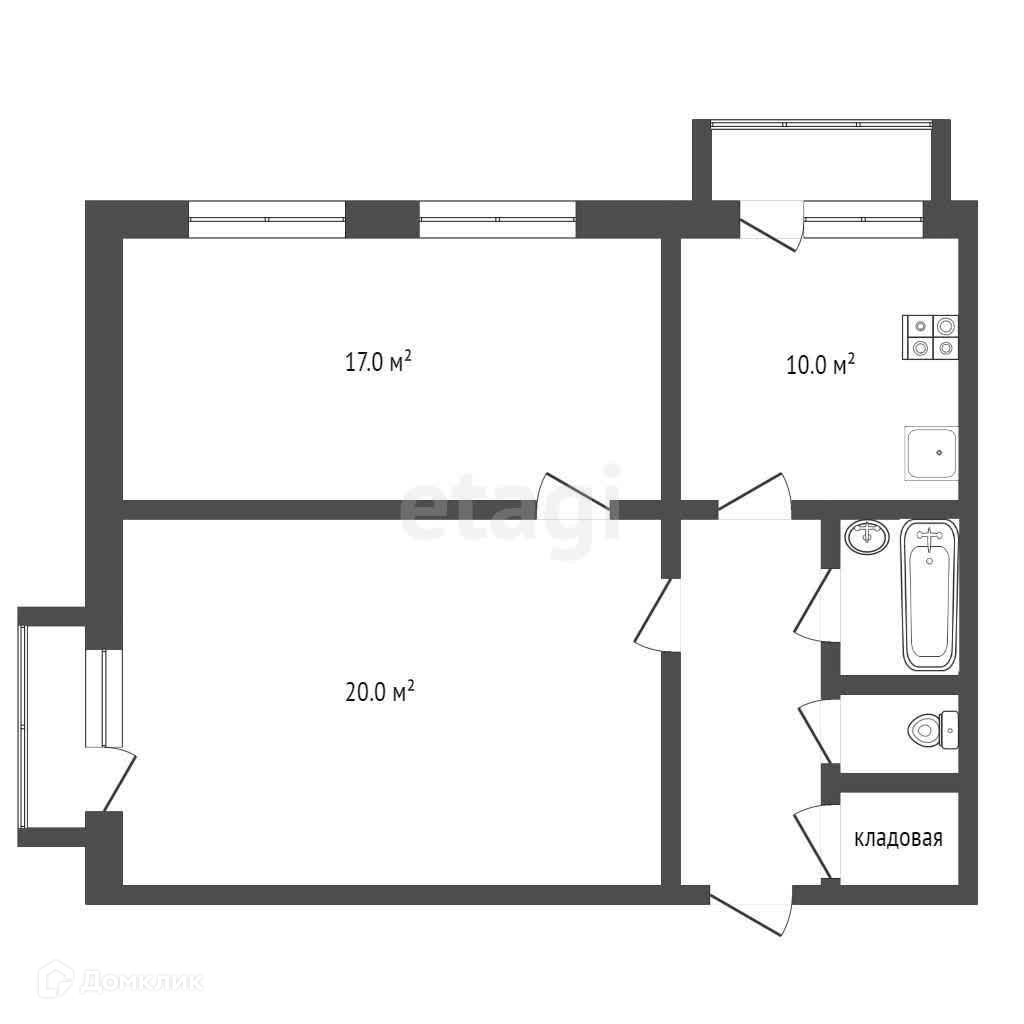 Общая площадь 64 кв.м./кухня 10. Две большие комнаты: 17 и 20 кв.м.
