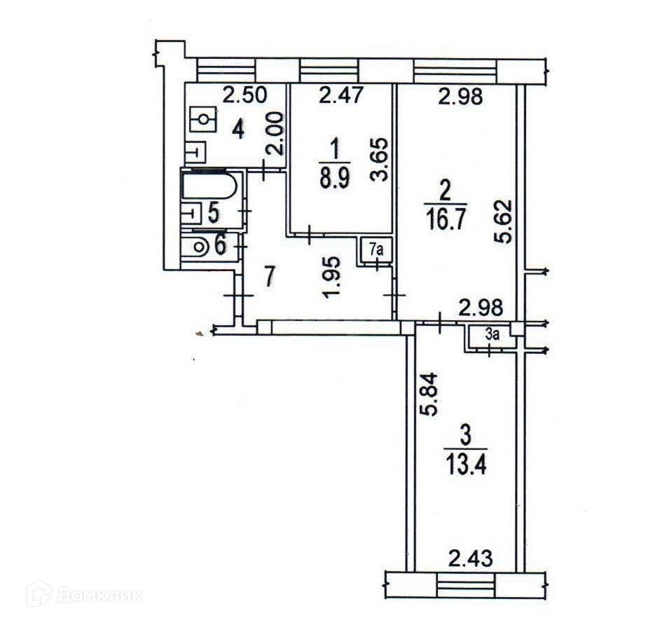 3-комнатная квартира, 56.2 м2, этаж 2 / 9, на продажу в Москве, Сиреневый бульвар, 3к5