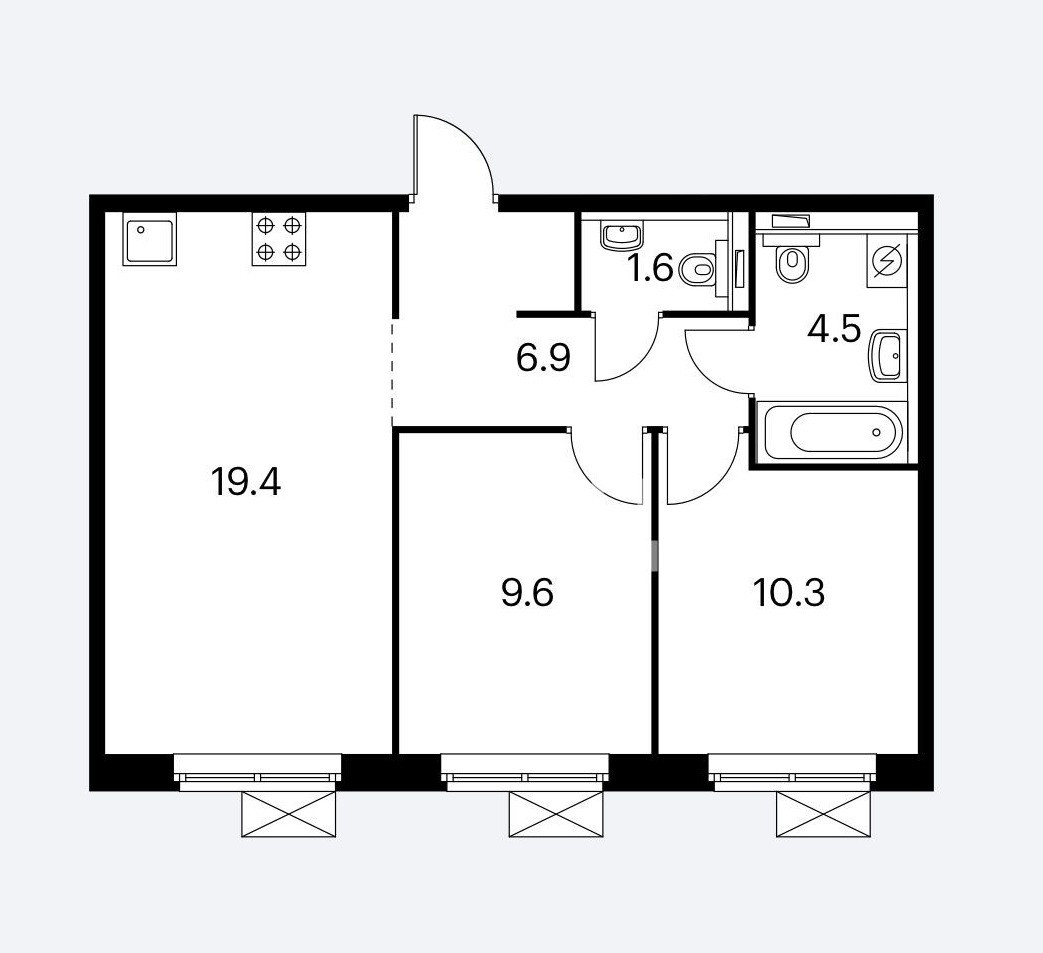 Общая площадь 53 м2