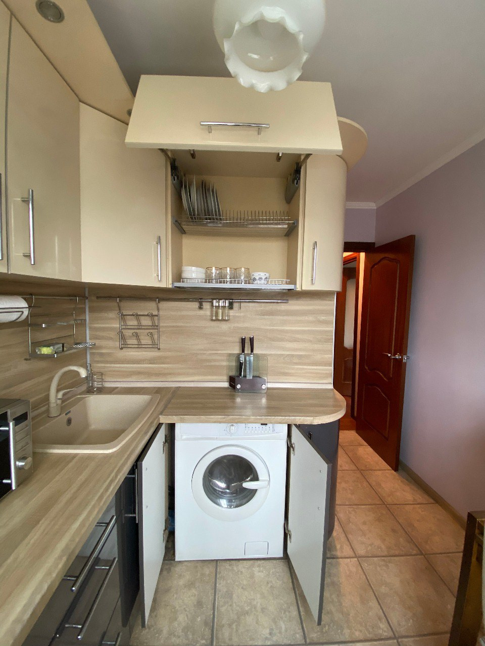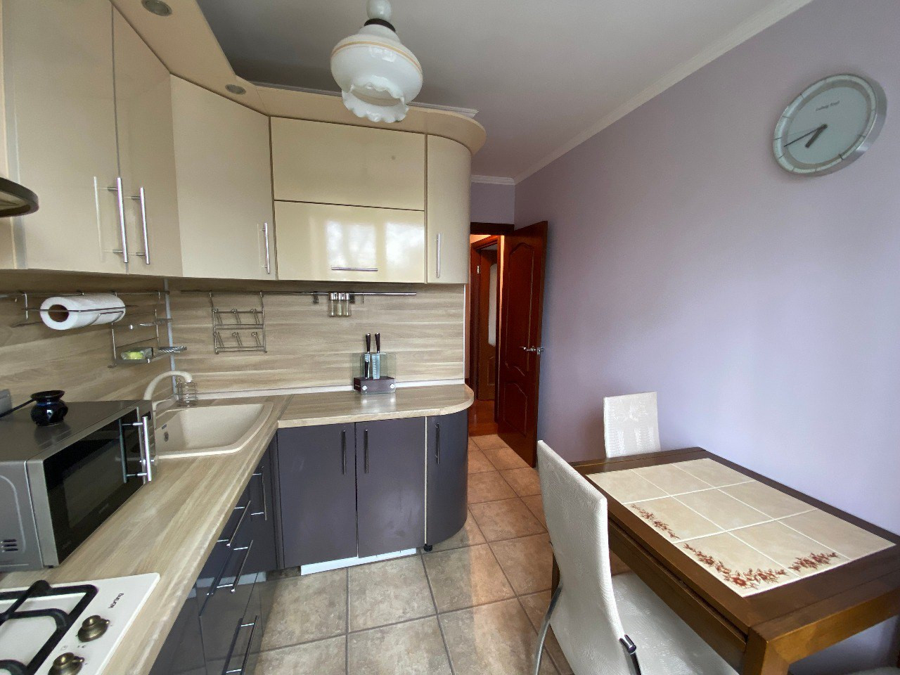 В квартире остается вся мебель и техника: кухонный гарнитур, холодильник, стиральная машина, газовая плита, телевизор, микроволновая печь, шкафы, диван и кровать.