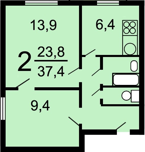 Общая площадь 38 м2