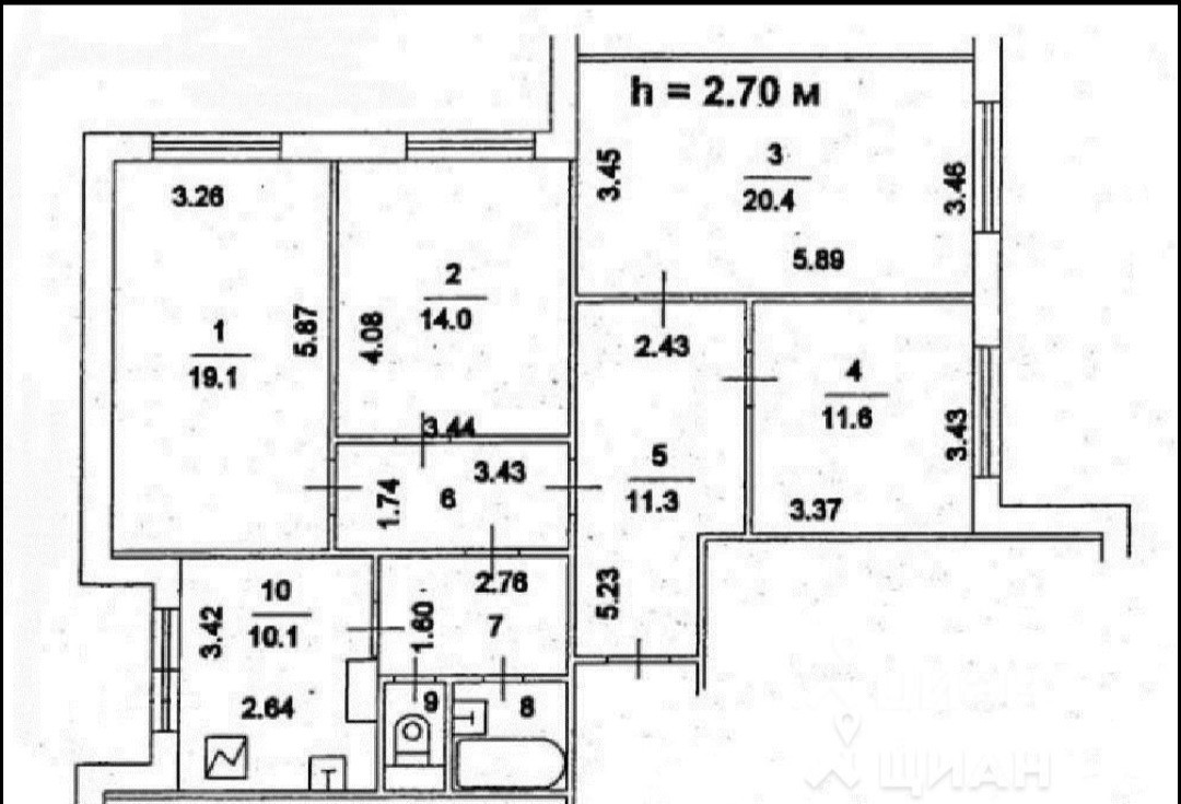 Высота потолков 2.65 м