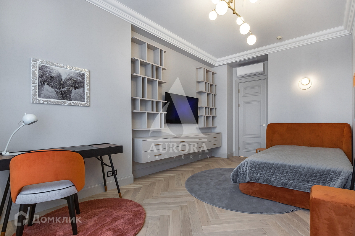 Семейная квартира площадью 162  кв.м с новой  авторской отделкой в современном стиле в жилом комплексе "Долина Сетунь". Функциональная планировка: кухня-гостиная, четыре изолированные спальни (основная спальня со своей гардеробной и ванной комнатами), три полноценных санузла.